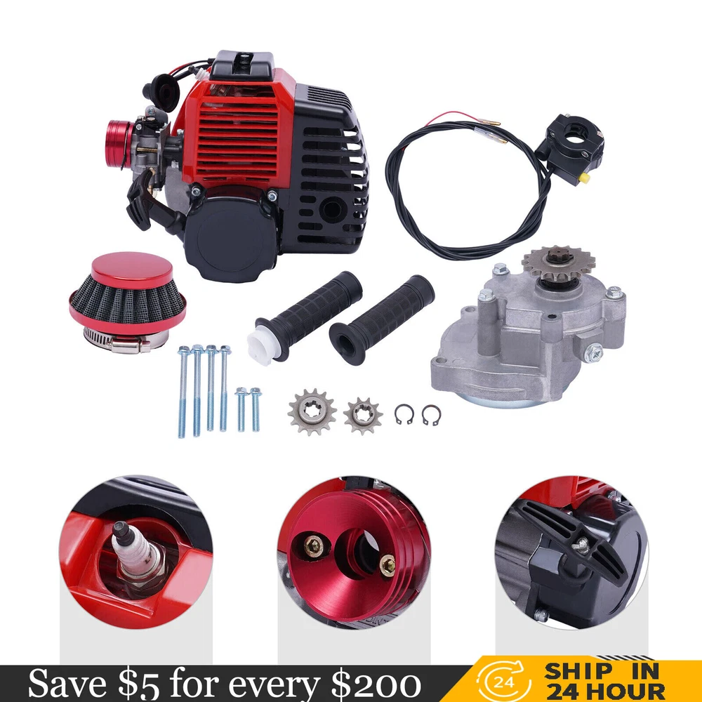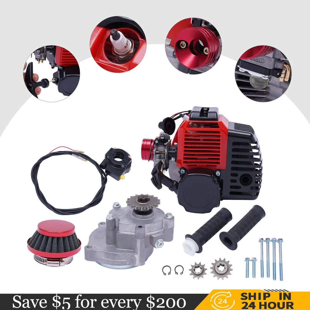 Bicycle Motorized 49CC 2-Stroke Gas Petrol Bike Engine Motor Kit Chain Scooter Fits (As a Reference) For 2-Stroke Frame Car (Silver Engine), Vapor Scooter (Red Engine) Package Included 2* Engines 2* Air Filters All Needed Accessories Notes We strongly recommend professional installation. Please contact us if you have any questions. Please allow the slight color difference caused by the shooting light and 1-3cm error due to manual measurement, and make sure you do not mind before you place the order. Key Features Premium Material: This Engine Kit Is Made of High-quality Aluminum, Iron, and Plastic, Giving It Good Hardness, Wear Resistance , and Durability so You Can Use It for a Long Time. Strong Power: It Has a Maximum Power of up to 1.9kw/3hp with a Speed of up to 7,000 Rpm Which Can Provide You with Strong Power. Good Heat Dissipation: It Adopts an Efficient Cold Air Cooling System and Wide Heat Dissipation Holes to Ensure Good Heat Dissipation, Thus Ensuring Long-term Operational Stability. Highlights Brand New, with High Quality Excellent Performance Small in Size, Space Saving Beautiful Appearance 49cc, Powerful Motor Easy to Clean Long Service Life Sturdy and Durable Complete Kit Low Fuel Consumption Payment Delivery details Terms of sales About us Contact us Payment We accept ebay payment 。 Fees such as import duties, taxes are not included in the item price or shipping costs. These charges are the buyer's responsibility. Delivery details Shipping: 2-9 working days to: USA Terms of sales We maintain high standards of excellence and strive for hundred percent customer satisfaction. Feedback is very important to us. We hope that you contact us immediately before you give neutral or negative feedback, so that we can address your concerns. It is impossible to address issues if we do not know about them! About us Your satis faction is our ultimate goal. We work hard to earn your trust and future business. Our certified technicians have tested each item before shipping. The unit comes with 1 year limited warranty on all manufacturing defects. a) If you receive a defective item, you may return it or ask for a discount. Please contact us within 14 days after you receive the package. b) What you returned must be intact and in its original packaging as re? u. Customer is responsible for shipping costs of the returned item. c) We will cover the cost of shipping back t with the shipping rate indicated in the registration page. We will send you a new unit or refund the full payment you paid. Thank you. Contact us Business Hour Business Hour: Monday To Friday: 8:30 AM to 5:00 PM (Beijing China time) Due to time zones, our reply to your questions may not be immediately. But within above working time, we will reply your email within 24 hours. If it's non-workdays, please kindly be patient and wait till Monday. Please contact us with ebay message. Please feel free to contact us if you have any questions. Monday To Friday: 8:30 AM to 5:00 PM (Beijing China time) Due to time zones, our reply to your questions may not be immediately. But within above working time, we will reply your email within 24 hours. If it's non-workdays, please kindly be patient and wait till Monday. Please contact us with ebay message. Please feel free to contact us if you have any questions.