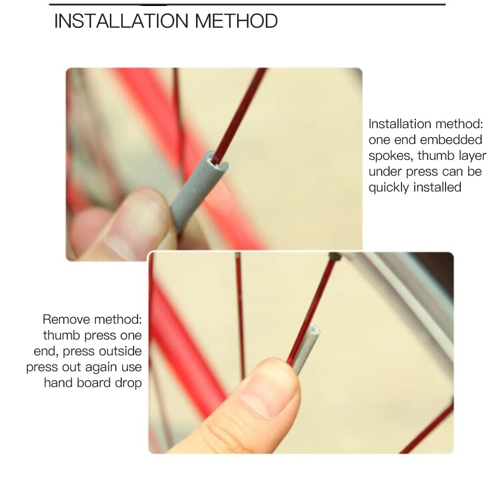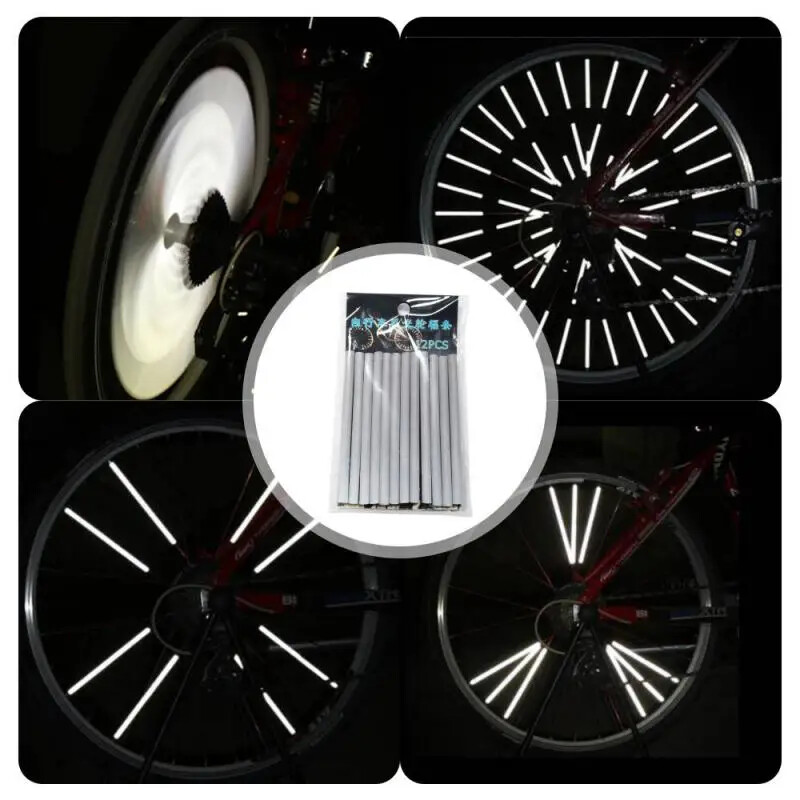 Bicycle Spoke Reflective Stripe Bike Spokes Reflector Steel Wire Lamp Warning Tape Bicicleta MTB Road Bicycle Accessories 2pcs Description: Bright reflective series product, colorful light bicycle spokes. It is a very good decorative ornaments and night protective equipment. No batteries, can be used for a long time, sun and rain are available. The distant direct light back to the light refraction principle according to the Light, day or night reverse have good Optical effects of radiation, so that the vehicle can easily find existence of the rider, reflecting good warning action. To be used in the bicycle spokes, give a strong reflection under the light irradiation by the electric torch or car at night. Specifications: Products: Reflective sticker for bicycle spokes internal diameter(approx.): 1.8-2.5mm Length (approx.): 75mm Outer Dia. (approx.): 5mm Material: Abs tube colorful reflective coating film Note: Please allow minor error due to manual measurement. Due to the difference between different monitors, the picture may not reflect the actual color of the item. This is reflective strips (not light bar, couldn't light itself), will be reflective in the light irradiation and give a security warning Couldn't luminous if you ride in the dark without light Package Included: 12 x Bike Reflective Tubes