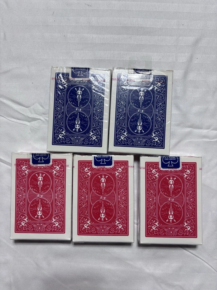 Bicycle Rider Back Poker 808 Playing Cards Blue Seals 5 Decks 2 Blue 3 Red. New sealed shipped with usps ground advantage.