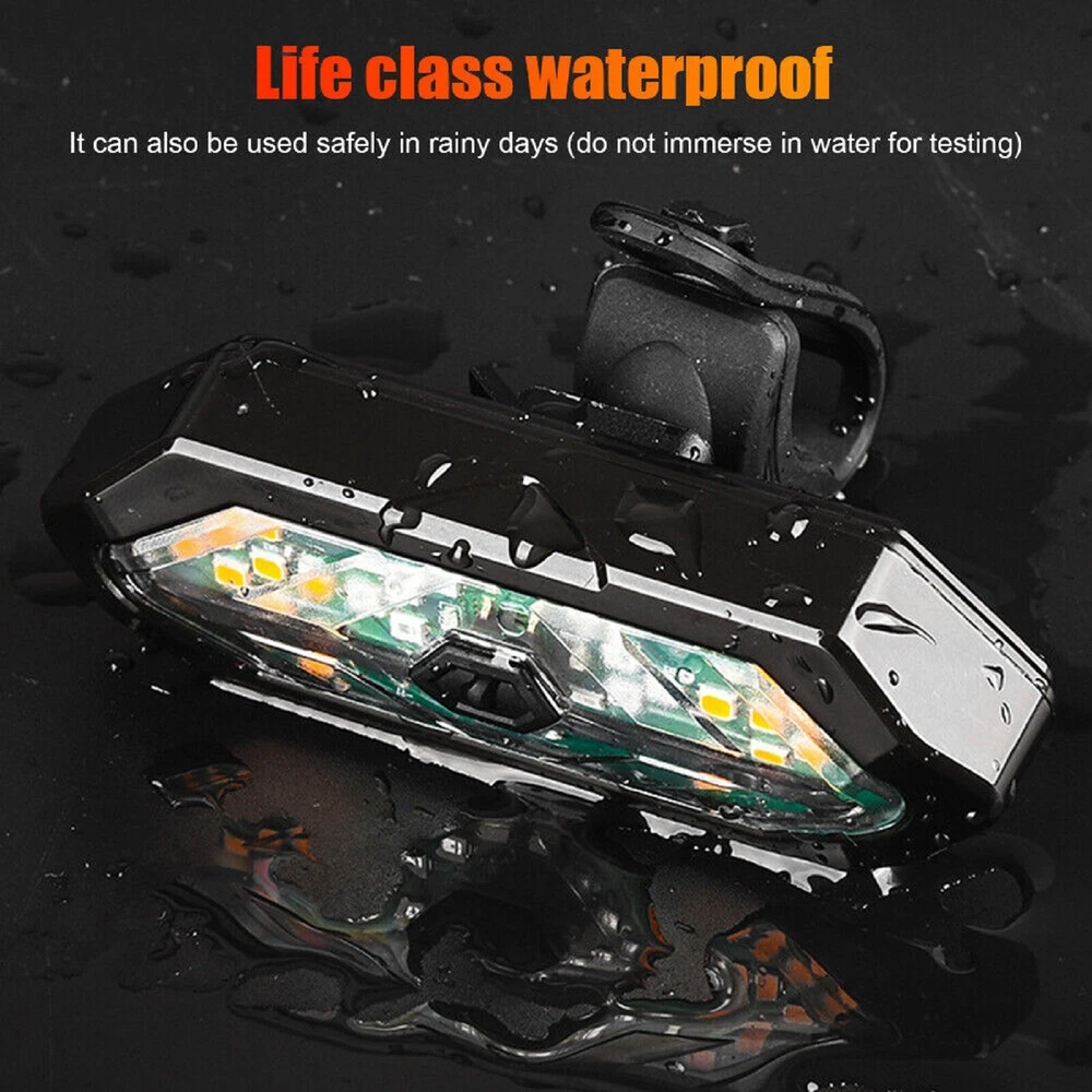 Product Description Bicycle Tail Light USB Wireless Remote Control Turn Signal Warning Lamp+Horn Specifications: Type: Remote Steering Tail Light Material: ABS+LED Shell Color: Black Light Color: Red light, turn to yellow light Lamp Bead: 32 LED( 14 red light beads+18 yellow light beads) Five Light Modes: Red Light--Flashing red light--Left turn signal--Right turn signal--All flashing Waterproof Level: IPX4 Light Size: 94*32.5*26mm/3.7*1.3*1in Control Type: Remote Control Remote Size: 54*42mm/2.1*1.7in Battery Capacity: 900mAh lithium battery Charging Time: 3 hours Discharge Time: 36 hours Sound: 120 Decibel Tweeter Remote control battery: 1x CR2032(included) Mounting Location: Seat posts, helmets, belts, backpacks, etc. Features: 1. Wireless Remote Control & 5 Modes Choice: Bike Tail Light with Turn Signal. Remote control the bike tail light to send signals in 5 different modes by the 3 easy to use buttons on the wireless controller. Include turn right + high decibel speaker, turn left + high decibel speaker, red light always on, red light flashing and all flashing, Remote control on handlebar, easy for cyclist to control during riding. 2. Powerful Bike Tail Light & Cycling Safety: The bike tail light with turn signal has 32 high light LED lamp beads, 94mm in size, waterproof and rechargeable, Provides extra-wide 150 degree angle and 492 feet distance visibility for your night & daytime cycling safety. 3. 120dB Horn Speaker: Designed with 120 decibel alarm speaker for better security warning when you turn left/right. Help to get passerby and drivers' attention, securing your safety when riding in traffic. 4. USB Rechargeable & Long Battery Life: 3 hours charging = 36 working hours duration. The Tail Light is built in rechargeable 900mAh lithium battery, It comes with a CHARGING CABLE that charges from your computer, power bank or any device with a USB port. 5. Easy Installation & Fits Every Bike: The rechargeable bike red light installs in seconds without tools, the silicone mount strap for Taillight is designed with four openings that tightly fit around most size handlebars and seat posts, Suit for all type of bikes, road bike, mtb, hybrid and also can be used as helmet light, backpack light, wheelchair light, scooter light and skateboard light. Package Include: 1x Tail Light 1x Remote 1x USB Cable 3x Straps Payment Shipping Returns Contact Us We accept all verified payments from ebay. Orders will be shipped after receiving cleared payment. Payment due within 7 days after auction ends and for buy it now listings. We ship most of our orders within 24 hours, and may up to 48 hours. If you want faster shipping way. Please contact us before making payment. Sometimes due to problems with our transportation company system, your shipping information may be delayed to update. We recommend that you try again after 3-4 days. If you still haven't checked the shipping information, you can contact us by ebay message. Always believe we can figure things out with communication, if it comes to return, the pacakge must be intact and the same as you receive. If you have any questions, please feel free to email our service specialists 24 Hours a Day, 7 Days a Week. We will reply you ASAP. Return/refund is accepted within 30 days after the buyer receives the item. NO exchange will be accepted after 30 days from the date when the item is received. Please contact us first before returning your product!!! If you have any questions, our Customer Service staffs welcome you to email us. We strive to answer all questions and resolve any problems as quickly as possible. You can contact us 7*24, we will reply at the first time, and we will surely solve your problems. Note: 1.We try our best to reply to your emails as soon as possible, however, due to high volume of daily incoming emails and time zone difference, we may not be able to reply your emails immediately. Please allow 1 business days for us to response. If you do not receive any reply from us, please check your email ensuring your mailbox has not reached full size. 2.Due to some ISP SPAM filter settings, you may not be able to receive our replies; if you have problems receiving our emails, you may need to use a different email account to contact us. 3.Please give us the opportunity to resolve any problem. We understand the concerns and frustrations you might have, and will try our best to resolve the issues. Please email us before leaving any negative feedback or open any dispute on PayPal. 4.We care about our valued customers, and will always try to help you. So if you have any problems, please e-mail us immediately. Payment We accept all verified payments from ebay. Orders will be shipped after receiving cleared payment. Payment due within 7 days after auction ends and for buy it now listings. Shipping We ship most of our orders within 24 hours, and may up to 48 hours. If you want faster shipping way. Please contact us before making payment. Sometimes due to problems with our transportation company system, your shipping information may be delayed to update. We recommend that you try again after 3-4 days. If you still haven't checked the shipping information, you can contact us by ebay message. Returns Always believe we can figure things out with communication, if it comes to return, the pacakge must be intact and the same as you receive. If you have any questions, please feel free to email our service specialists 24 Hours a Day, 7 Days a Week. We will reply you ASAP. Return/refund is accepted within 30 days after the buyer receives the item. NO exchange will be accepted after 30 days from the date when the item is received. Please contact us first before returning your product!!! Contact Us If you have any questions, our Customer Service staffs welcome you to email us. We strive to answer all questions and resolve any problems as quickly as possible. You can contact us 7*24, we will reply at the first time, and we will surely solve your problems. Note: 