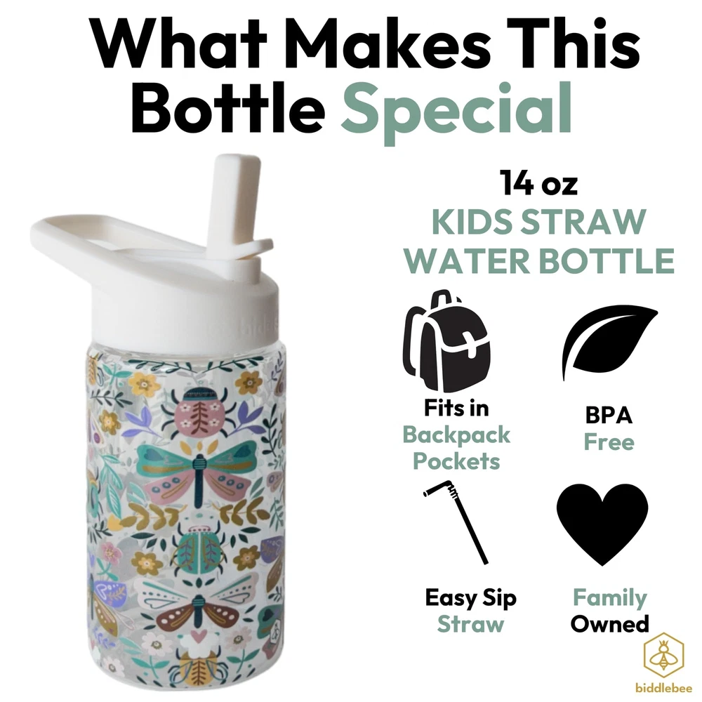 Introducing the Biddlebee Kids Water Bottle, the perfect hydration companion for your little ones! Made from durable, BPA-free plastic, this 14oz bottle features a leak-proof straw lid and a built-in carry handle, making it ideal for school, sports, and everyday adventures. The Biddlebee Kids Water Bottle comes in a variety of fun, printed designs that your children will love, including custom options where you can add their name for a personal touch. Designed with kids in mind, it fits perfectly in cup holders and backpack pockets, ensuring your child stays hydrated on the go. Say goodbye to spills and dehydrated kids with this reliable and stylish water bottle! BPA-Free & Safe: Made from high-quality, BPA-free plastic, ensuring safe drinking for your little ones. Leak-Proof Design: The easy sip straw lid is designed to be completely leak-proof, preventing spills and messes. Kid-Friendly Features: With a built-in carry handle and fun, printed designs, this bottle is perfect for boys, girls, and toddlers. Customizable Options: Personalize the bottle with your child’s name, making it uniquely theirs and easy to identify. Perfect Fit: 14oz capacity fits perfectly in car cup holders and backpack pockets, making it ideal for school, travel, and outdoor activities.