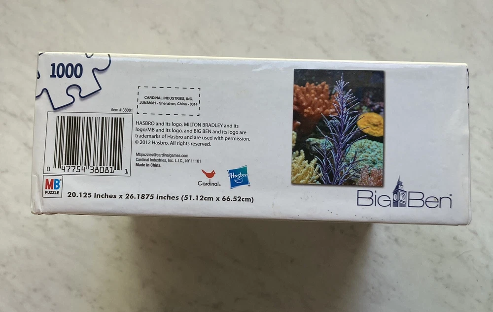 Big Ben Jigsaw Puzzle 1000 Pieces ~Underwater 38081 ~Hasbro Coral ~USA. Box may have some shelf wear. Please let me know if you would like more details or pictures. If you are unhappy with your purchase in any way- send me a message before you leave neutral or negative feedback. Thank you!!