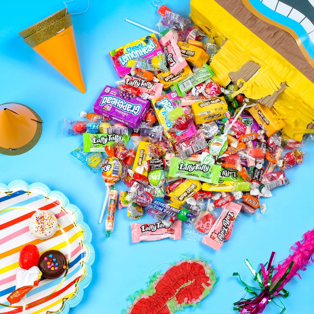 Image not taken to scale. Contains approximately 8 lbs of candy. Great candy for Valentines, birthday parties, parades and more! Great bulk candy that will be loved by kids of all ages (and adults too). Enjoy these bulk sweet treats with many enticing flavors of the classic candy you crave. May include candy rolls, tropical & extreme candy rolls, cotton candy gumballs, food shaped gummies, lemon candies, layered hard candy balls, hot candy balls, assorted taffy, assorted fruit chews, bubble gum, classic lollipops, assorted changemaker candy boxes. Item is a variety and MAY NOT INCLUDE ALL LISTED CANDY. Great bulk candy variety assortment for Valentines Parties, Birthday Parties, Parade Throws, Holiday Parties, Carnivals, offices, Claw Machines, Pinata Stuffers and more! Individually wrapped. Items are repackaged in a facility that may contain milk, soy, peanuts, tree nuts, eggs, wheat and all other allergens. Product Description