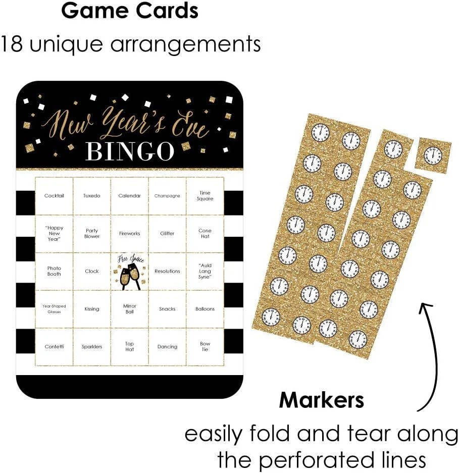 Big Dot of Happiness New Year’s Eve - Gold - Bar Bingo Year's - Product Details Product Dimensions: 8 x 5.63 x 0.38 inches Item Weight: 5.9 ounces Manufacturer: Big Dot of Happiness Is Discontinued By Manufacturer: No New Years Eve Bingo Cards and Markers INCLUDES 18 game cards, 18 perforated marker sheets, 1 perforated call sheet, and game instructions. MUST-HAVE PARTY SUPPLY: Bingo is an easy and classic New Year’s Eve game that everyone will have fun playing. New Years Eve Bingo Cards and Markers give this classic game a fresh look with New Year’s Eve playing cards and activities related words instead of numbers. HOW TO PLAY: Play traditional bingo rules or take out with your group and play bar bingo. Like gift bingo, bar bingo is played by observing your crowd and marking the space when you see a corresponding item. Begin traditional play by the designated bingo leader pulling a caller chip from the bowl. Each guest covers the called word on their card with square marker. Continue until a guest has covered a row in any direction – vertically, horizontally, or diagonally and calls out “BINGO!”. HIGH-QUALITY: New Year’s Eve Bingo Cards and Markers are professionally printed and double-sided on sturdy cardstock paper. They are individually inspected and carefully packaged by hand. Each card measures 5” Wide x 7” Tall, perforated marker sheets measure 2.75” Wide x 5” Tall and individual markers measure 0.75” Wide x 0.75” Tall. MADE IN THE USA: New Year’s Eve Bingo Game is designed and manufactured at our Wisconsin facility using materials that are Made in the USA.