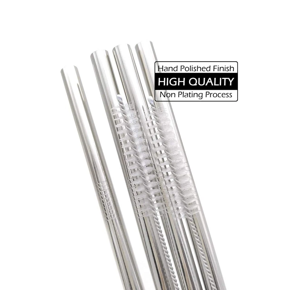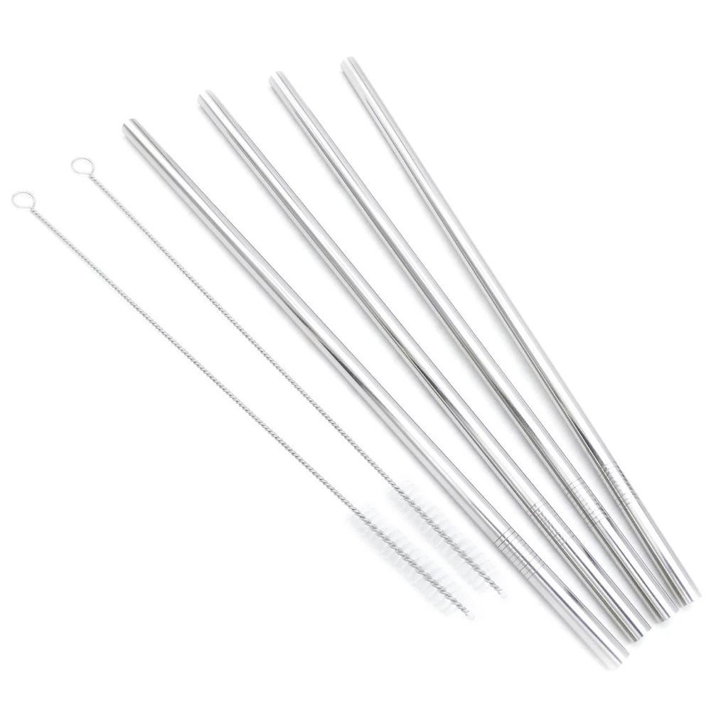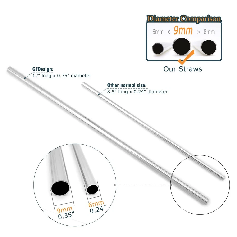 NOTE: please take a look at your tumbler lid hole to make sure if it fits a 3/8 inch (9 mm) wide straw. Product Properties: Product Name: Stainless Steel Straws Set Material: SUS 304 Food - Grade 18/8 Stainless Steel Size: 12 x 0.35 inches / 305 x 9 mm Color: Silver Package Included: 4 x Stainless Steel Straws 2 x Cleaning Brushes Made of SUS 304 Food-Grade 18/8 Stainless Steel, innoxious, no peculiar smell, reusable and durable Eco-Friendly design. Designed with your health in mind, these straws are free from toxins like Bisphenol A (BPA) found in plastic straws. Dishwasher safe, easy to clean, won't rust, corrode, stain or bend. The straws come with a cleaning brush for fast, effective and hygiene manual cleaning. Clean them with warm soapy water after you receive straws, then you won't feel any smell of steel when you enjoy your juice,or other drinks. Package: 4 x Straight Straws + 2 x Cleaning Brushes.