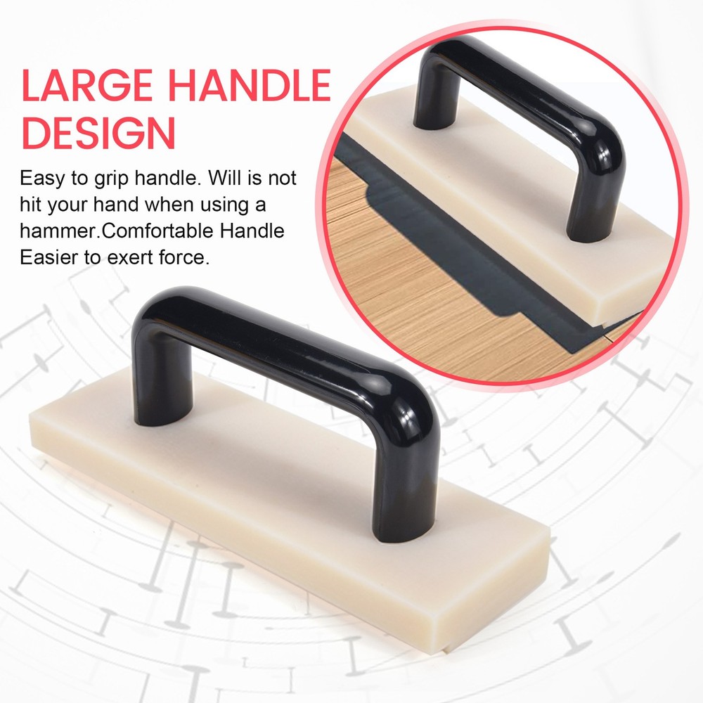 Tapping for Vinyl Plank Flooring Install Flooring Tapping with Big Handle1350 Features: 1. Joins flooring planks without damaging the floor. Close gaps during flooring installation with the Lengthen Flooring Tapping Block. Simply place against the edge of a laminate or hardwood flooring plank, then tap with a hammer for perfectly tight floorboards. Great for closing gaps between longer flooring planks. 2. LARGE HANDLE DESIGN - Easy to grip handle. is not hit your hand when using a hammer. Comfortable Handle Easier to exert force. All MADE FROM NYLON - Nylon integrally formed. The hardest plastic in the world. long-lasting durability. SCREW EMBEDDED DESIGN - Screw Built-in, Not hurt floor. Ergonomic handle is made for quick and easy placement during installation. 3. Protects the tongues and edges of your flooring. Tapping with a soft head mallet only, never with a metal hammer, this tapping block protects your flooring tongues or edges from damage during installation, allowing you to gently set each plank into the groove of the adjacent plank. 4. This professional tapping block prevents damage when seating delicate tongue and groove flooring. combination edge design for use with most types of flooring. Block dimensions: 200mm Installer designed has extra length for longer planks. , must-have tool for easier flooring installations. Application: Floor installation Material:nylon colour:Black + White Package Contents: 1 x Tapping Block
