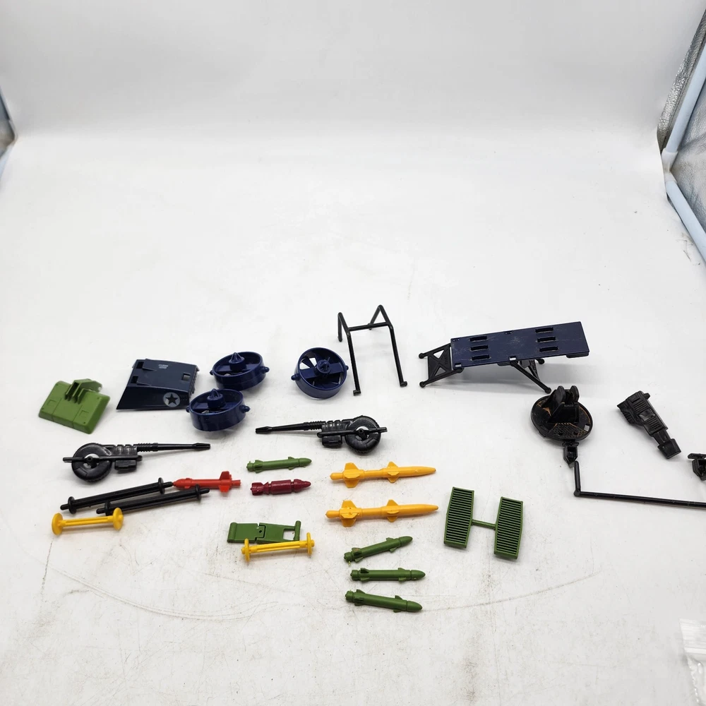 This GI Joe accessory is in good overall condition. This part has some playware/blemishes unless noted otherwise (See photos) It would be perfect to complete your vehicle or have extras. This will need a quick wipe down(cleaned) from being in storage ***Some pieces are from the 1987 Vindicator, and others are just random, miscellaneous pieces and parts*** ***there are 3 parts that will need to be cleaned(it has dirt on them) they're stored in a separate bag*** See all photos closely See photos for consideration and condition. If you have any additional questions or concerns, please reach out to us prior to payment. We do offer combined shipping, so please check out our other GI Joe listings