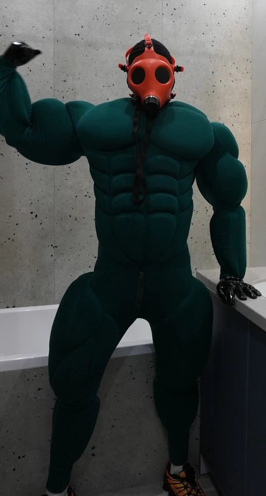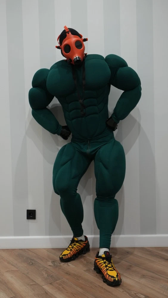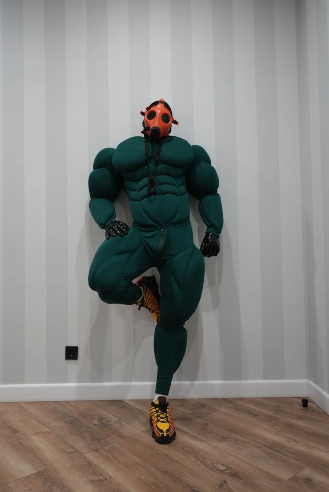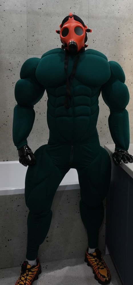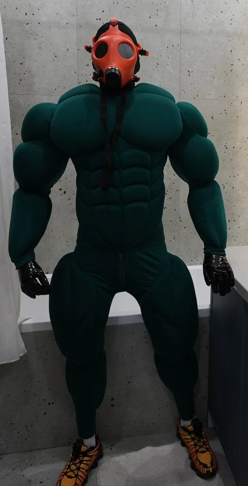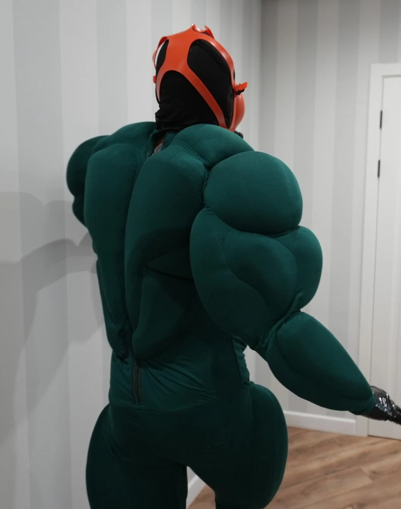 Muscle Suit for cosplay halloween Manufacturing 3-6weeks. Mask, bracelets, not for sale. I sell only muscle suit. SIZE GUIDE: Size: Standard Muscle suit is made of spandex fabric. 1. Height for 170-195cm. 2. Chest for 34-48 inches 3. Waist for 30-48 inches 4. Hip for 19-32 inches. 5. Biceps for 11-20 inches. 6. Calf for 10-22 inches. Front small zipper and one lock zipper on the back. (Size is for body from minimum to maximum in inches. If your body measurements are larger than these measurements, then this size will not fit you). Shipping worldwide 10-45days