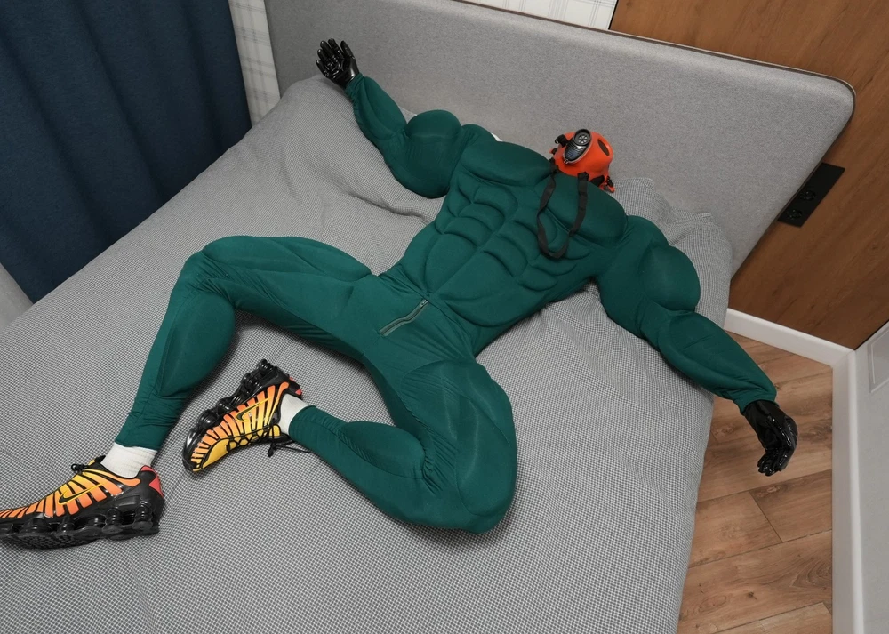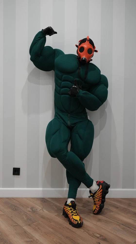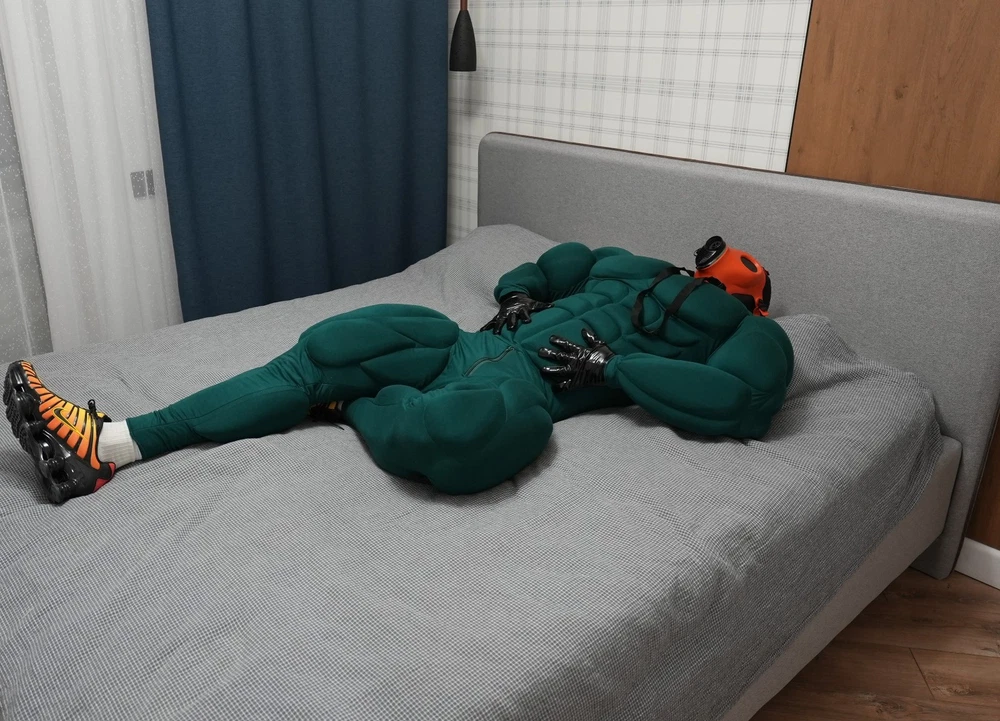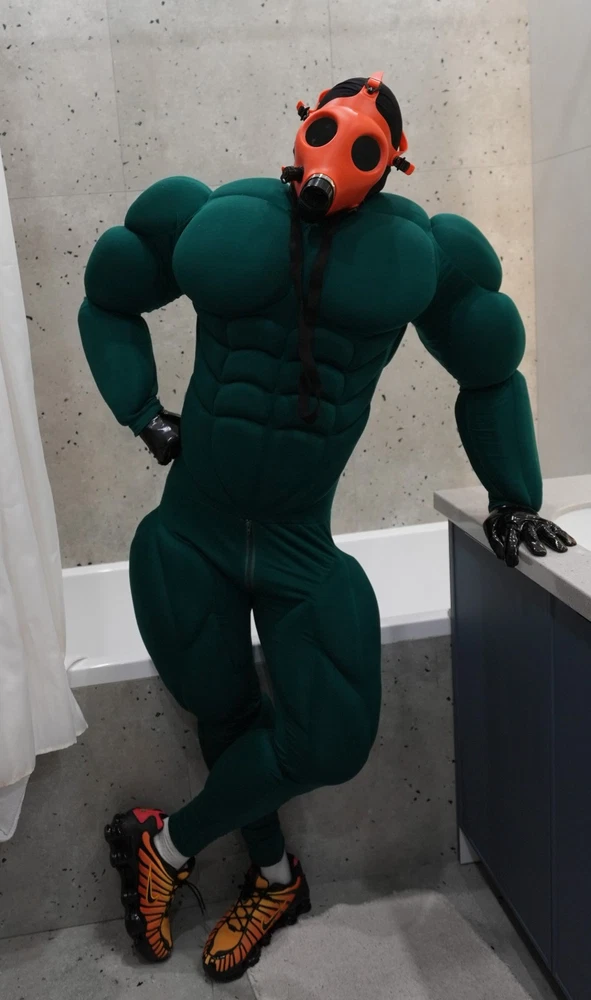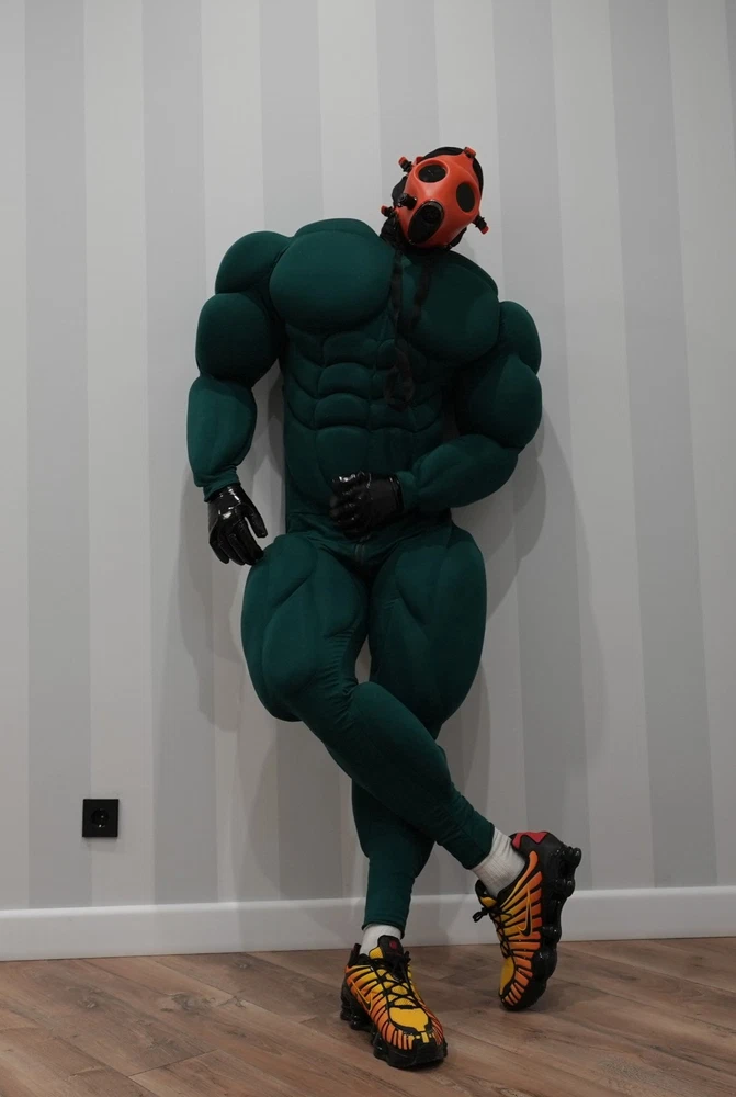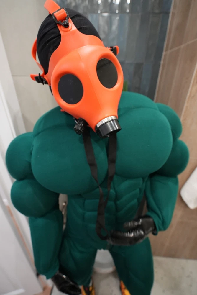Muscle Suit for cosplay halloween Manufacturing 3-6weeks. Mask, bracelets, not for sale. I sell only muscle suit. SIZE GUIDE: Size: Standard Muscle suit is made of spandex fabric. 1. Height for 170-195cm. 2. Chest for 34-48 inches 3. Waist for 30-48 inches 4. Hip for 19-32 inches. 5. Biceps for 11-20 inches. 6. Calf for 10-22 inches. Front small zipper and one lock zipper on the back. (Size is for body from minimum to maximum in inches. If your body measurements are larger than these measurements, then this size will not fit you). Shipping worldwide 10-45days