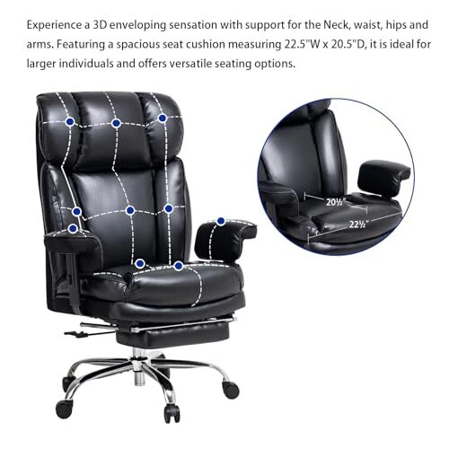 Menu 1. We require immediate payment. 2. We currently accept payment via eBay managed payments only. 3. Once payment is cleared, we will dispatch your shipment within 1-3 business days. Please refer to the "Shipping" tab for more information regarding shipping speed to your destination. Big and Tall Office Chair 400lbs, Wide Seat, Telescoping Leg Rests, Adjustable Armrests - Comfortable Office Chair for Lower Back Pain, Black Heavy-Duty Leather Office Chair Product description Built to Withstand Heavy-Duty Use - This big and tall chair, equipped with a 4th level gas lift certified by TUV and BIFMA, office chair 400 lb weight capacity, making it an ideal choice for heavy-duty use, Office chairs for heavy people Comfortable Design - Ergonomic office chair designed for back pain relief. Experience unparalleled comfort with our padded office chair featuring high-density foam and high-loft fiber, ideal for long hours of work, study, computer use, or gaming Multifunctional Adjustability - Enjoy the versatility of adjustable seat height and 360° swivel function. The backrest can be adjusted from 95 to 135° with 3 levels, and a tension knob. The telescoping leg rests offer diverse sitting and reclining Adjustable Armrests - This heavy duty office chair ensures complete relaxation for both arms. The armrest has 4 adjustable heights, with the lowest being adjustable to 26 inches so they can be pushed below the desktop without any interference Quality Materials - Durable, breathable leather office chair that is easy to clean. Features 2.4" large diameter swivel wheels for silent movement and floor protection. Ideal for home office desk chairs, and executive office chair PLEASE MESSAGE US IF YOU HAVE ANY OTHER QUESTIONS, AND MANY THANKS FOR READING ALL OF THIS. Copyright ©#. All Rights Reserved.