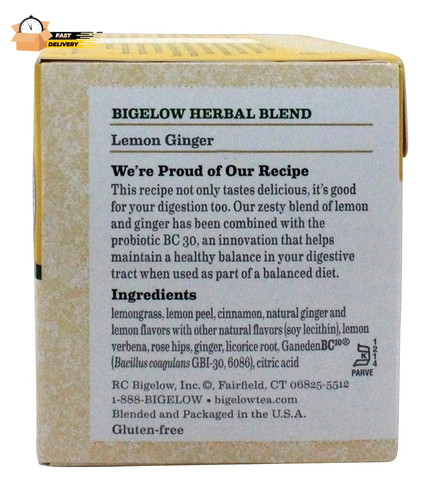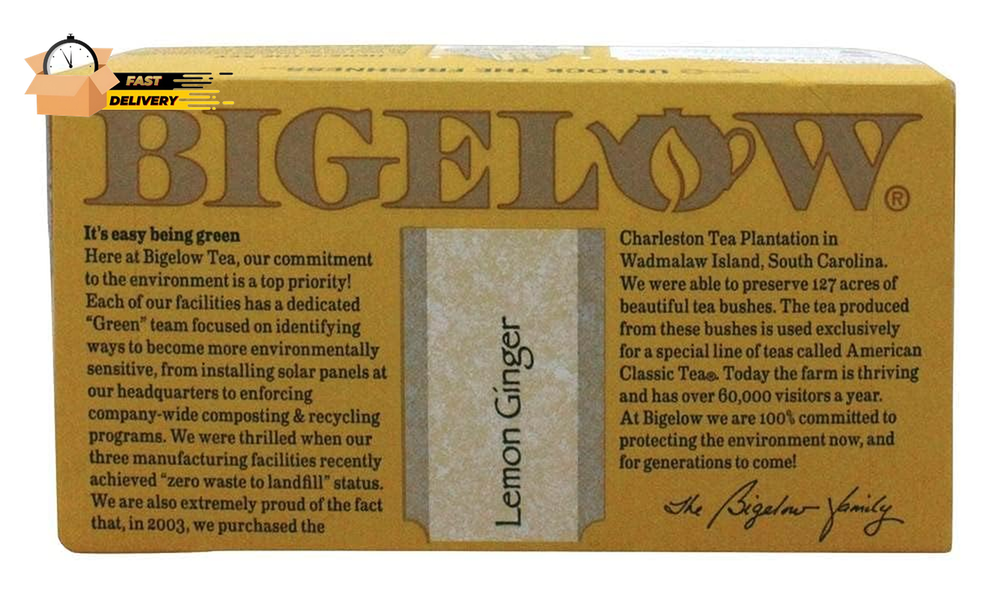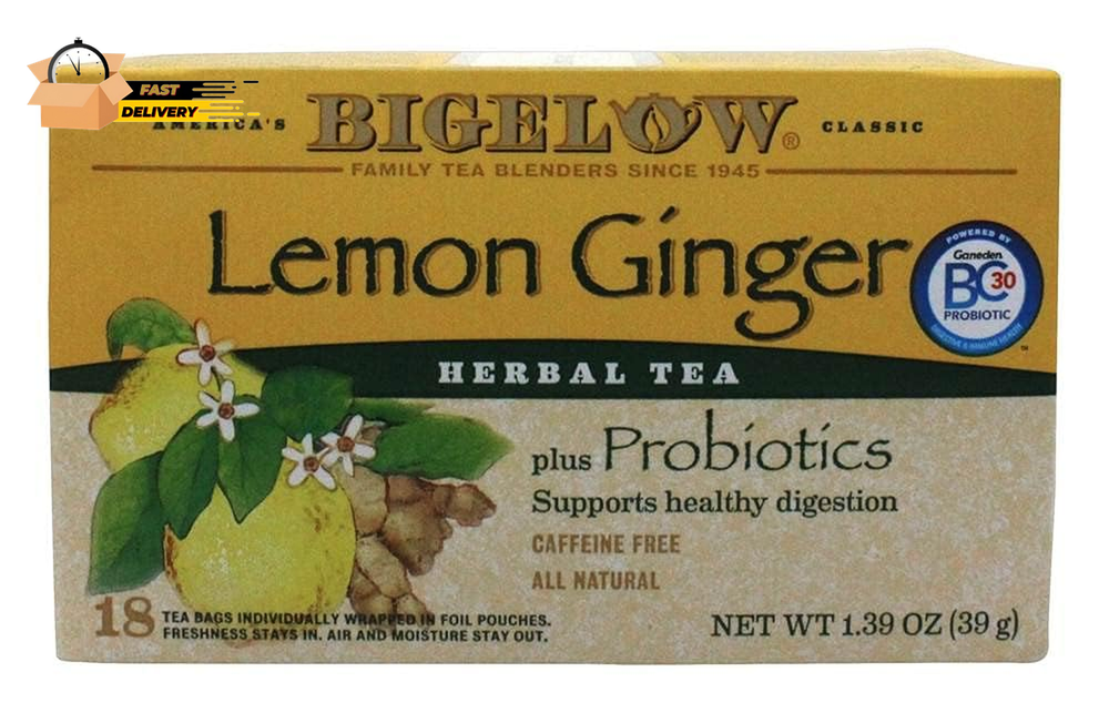 Store New Arrivals Add to Favorite View Feedback Contact Bigelow Lemon Ginger plus Probiotics Herbal Tea Bags, 18 Count Box (Pack of 1) Description Item model number 00232089 Unit Count 18 Count Tea Variety Ginger Product Dimensions 5.2 x 2.75 x 3.15 inches; 1.31 ounces Size 18 Count (Pack of 1) Flavor Name Ginger Lemon Flavor Ginger Lemon Is Discontinued By Manufacturer No Item Form Bag Delicious Probiotic Tea: Our zesty blend of lemon and ginger has been combined with the probiotic BC 30, an innovation that helps maintain a healthy balance. Drink hot or iced Individually Wrapped: Bigelow Tea always come individually wrapped in foil pouches for peak flavor, freshness and aroma to enjoy everywhere you go. Gluten-free, calorie-free, and Kosher Certified Try Every Flavor: There's a tea for morning, noon, and night time relaxation. Try our English Breakfast, Vanilla Chai, antioxidant Green Tea, decaffeinated teas, organic teas and a variety of our herbal tea bags Blended and Packaged in the USA: In 1945 Ruth Campbell Bigelow created our first tea, Constant Comment, a strong, flavorful black tea blended with aromatic orange peel and sweet warming spices. Today, Bigelow is still 100% Family Owned Uncompromised Quality: Since 1945, Bigelow Tea has been a leader in premium tea and proud to be a Certified B Corporation - meeting the highest verified standards of social and environmental performance, transparency and accountability Product Description This recipe not only taste delicious, it's good for your digestion too. Our zesty blend of lemon and ginger has been combined with the probiotic BC 30, an innovation that helps maintain a healthy balance in your digestive tract when used as part of a balanced diet. About the Brand The Bigelow Tea Story Beginning the moment our founder, Ruth Campbell Bigelow created "Constant Comment" Tea in her kitchen in 1945, our family has focused on just one thing trying to make the finest teas possible. Over the years we have introduced many new flavors as well as concepts in tea. Today we offer a selection of deliciously different blends of teas and green teas, a wide variety of herbal teas and teas flavored with real fruit juice. Today Bigelow Tea is the number one specialty tea company in the United States. And to think it all began with the first legendary black tea flavored with golden orange rind and sweet spice "Constant Comment"Tea. Bigelow takes immense pride in providing the tea drinking community with the best tea at a great value. We only use hand- picked teas, real spices, flavors and herbs. The flavors and blends we have created are second to none. Some of our teas contain up to twenty different ingredients! And because tea is a leaf that can dry out we take steps to protect it. To keep the teas fresh, we seal our tea bags in protective packets. We simply have to protect those delightful flavors. That's why a cup of Bigelow Tea is aromatic and delicious; a true indulgence for the senses. ABOUT US We offer the best prices around on high quality products. Our E-store includes media such as books, movies, music and games while offering electronics, toys, sporting apparel, clothing, tools, general home, garden items and more. SHIPPING We are always working hard to ensure your package arrives as soon as possible. Please understand that some factors like weather, high postal traffic, and the performance of shipping companies are outside of our control. We offer free shipping to the lower 48 states and ship within 2 business days of payment, usually sooner. We do not accept P.O. Boxes. Please provide a physical address. For shipping outside of the continental USA, we only use eBay's Global Shipping Program.The item is shipped to KY and then sent to the rest of the world. International customers are responsible for all duties and taxes. Continue to check out in order to calculate costs for shipping the item to your country. Messages regarding eBay's Global Shipping Program MUST be directed at eBay EXCLUSIVELY. RETURNS We offer a 30-Day Return Policy on items which you are not completely satisfied with. You have the option for a full-refund or an exchange of the item. No returns are available on items shipped outside of the USA. PAYMENT We accept PayPal. CONTACT US This page content is yet to come Please ad us to your favorite seller and visit again later Thank You CUSTOMER SATISFACTION We try our very best to make sure every customer is completely satisfied. If there's a problem, message us! We're happy to help. WE ACCEPT Copyright © 2021 AutoDS. | All Rights Reserved