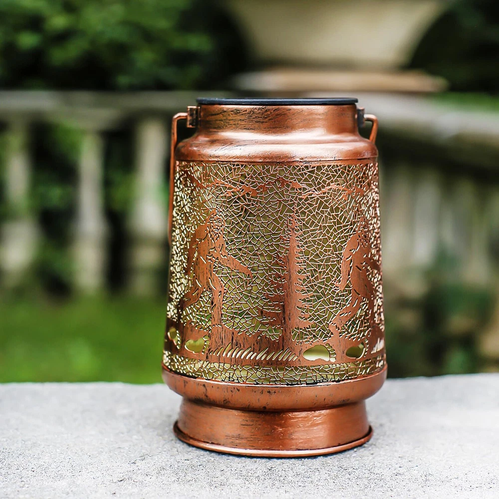 【Perfect Garden Decorations】- Bigfoot solar lantern can project unique and beautiful patterns in a dim environment, creating a gorgeous and warm atmosphere to bring life and fun to your garden and attract your family or friends. The unique hollow out design and beautiful antique bronze color give it an artistic touch, perfect for decorating gardens, backyards, corners, Outside, sidewalks and many other scenes. 【Ideal Garden Gifts】- Bigfoot symbolize courage, strength, Spirit of Inquiry, among other good meanings. This bigfoot solar hanging lantern is perfect for Mother's Day, Father's Day, Thanksgiving, Christmas, Valentine's Day, birthdays, weddings, New Year's and housewarming gifts for fathers, mothers, dads, moms, husbands, wives, grandfathers, grandmothers, lovers, sons, daughters, friends or yourself. It's definitely a unique and surprising gift! 【Efficient Solar Powered】- Before using, please press the button to put it in the "on" position. The bigfoot solar outdoor lantern will absorb sunlight to charge for about 6 hours during the day and will light up for about 8 hours at night. It automatically turns on at dusk and off at dawn, making it super easy to use. Size: 6.6"H x 4.4"W x 4.4"L 【Durable&IP65 Waterproof】- The main part, handmade with new upgraded high quality durable metal. The top of the light, consisting of bright LED lights and energy-efficient solar cells, is not only long-lasting, but also very energy-efficient and environmentally friendly. Waterproof rating of IP65, with excellent weather resistance, no need to worry about rain, snow and other bad weather. 【Good Customer Service】- We are committed to providing the best possible experience for our customers. If you have any questions, please feel free to contact us and we will respond and address your needs within 24 hours. And we offer a 30-day money back satisfaction guarantee. Please buy with confidence.