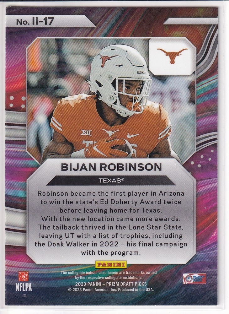 Bijan Robinson 2023 Prizm Draft Picks Instant Impact RC #II-17 Texas