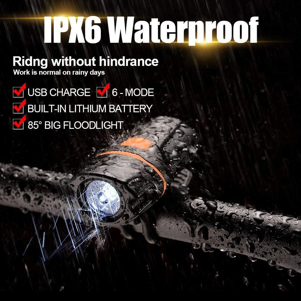 ✔ORDER NOW WITH 100% MONEY BACK & SATISFACTION GUARANTEE: We are guaranteed to be the high-quality material BIKE LIGHT SET, provide excellent customer service. if anything goes wrong with the item, we will arrange you a replacement free or full refund, no return required. Save your money - More discount to celebrate Easter day Safe Driving Aid with 6 Modes: This device is essential for safe driving. The lateral light distracted is wider at 85 degrees of illumination..There are high,medium,low,low speed flashing, high speed flashing ,and the light is easy to operate USB Rechargeable Cycling Light: USB Rechargeable Cycling Light: Charging time cut by 50%+. 3-part indicator shows battery. No battery buys. Use included USB cord and power source (computer, laptop, charger) to recharge. 2+ hours in STRONG mode for night Bright Bike LED Lights + Ipx6 Waterproof: Super bright, customer-proven. IPX6 water-resistant for heavy rain. Durable plastic, shock-resistant for rough roads Versatile & Tool-Free Mount: Mountable Diameter 17-44 mm. Because it can be easily removed from the handle holder ,it will be a theft prevention. it can also be used as a light if removed.use it when you're running, camping, cycling, and more Ultra-Bright LED Lighting for Unmatched Visibility: Our bicycle lights feature the latest LED technology, providing exceptional brightness and wide-angle illumination. With a crisp, powerful beam that significantly increases your visibility on the road