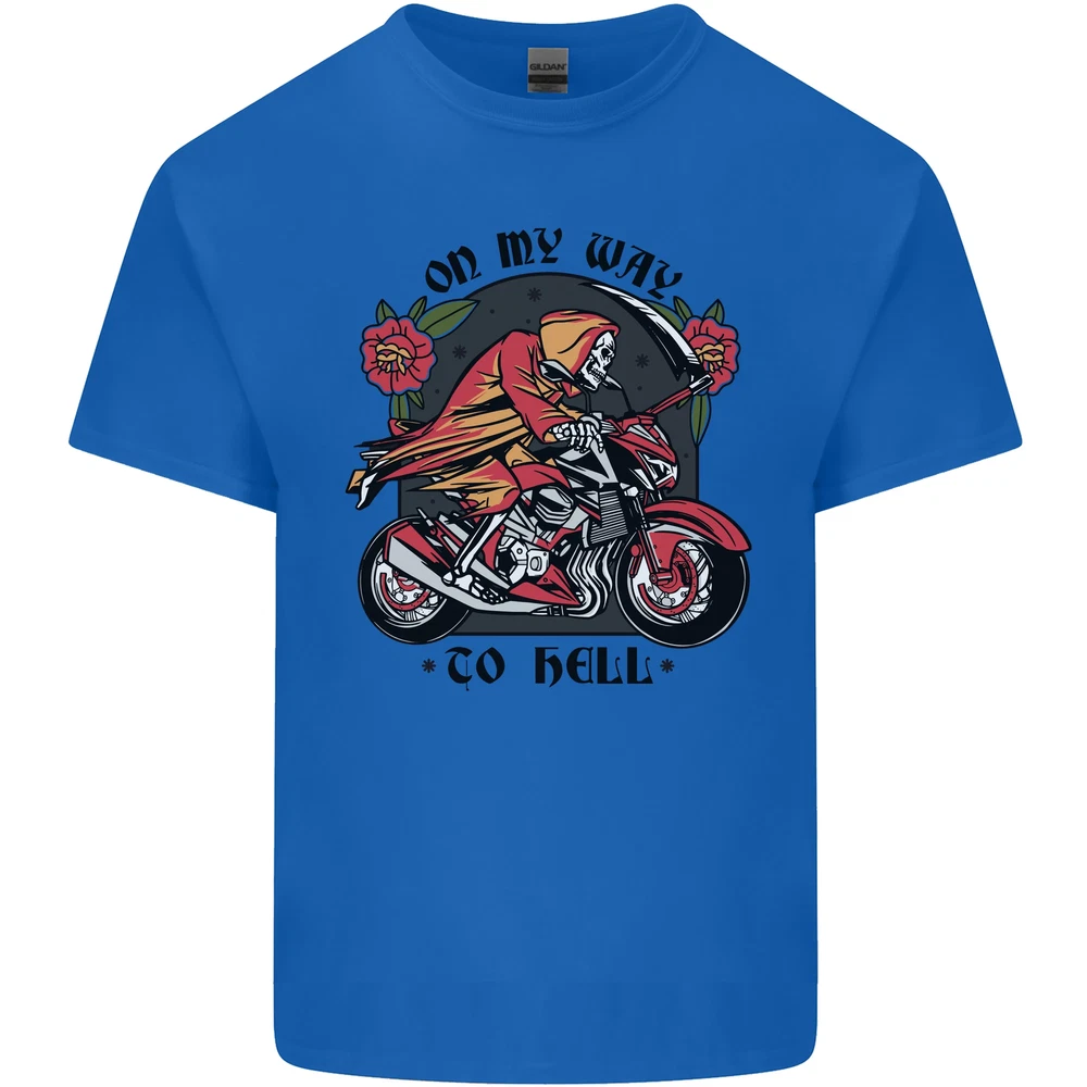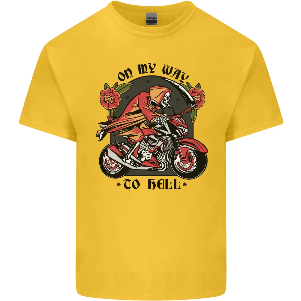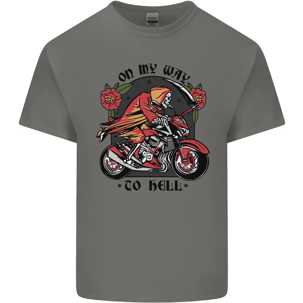 Biker On My Way to Hell Motorbike Skull Mens Cotton T-Shirt Tee Top
