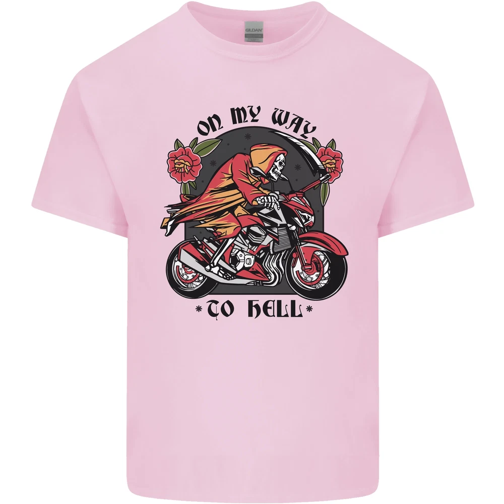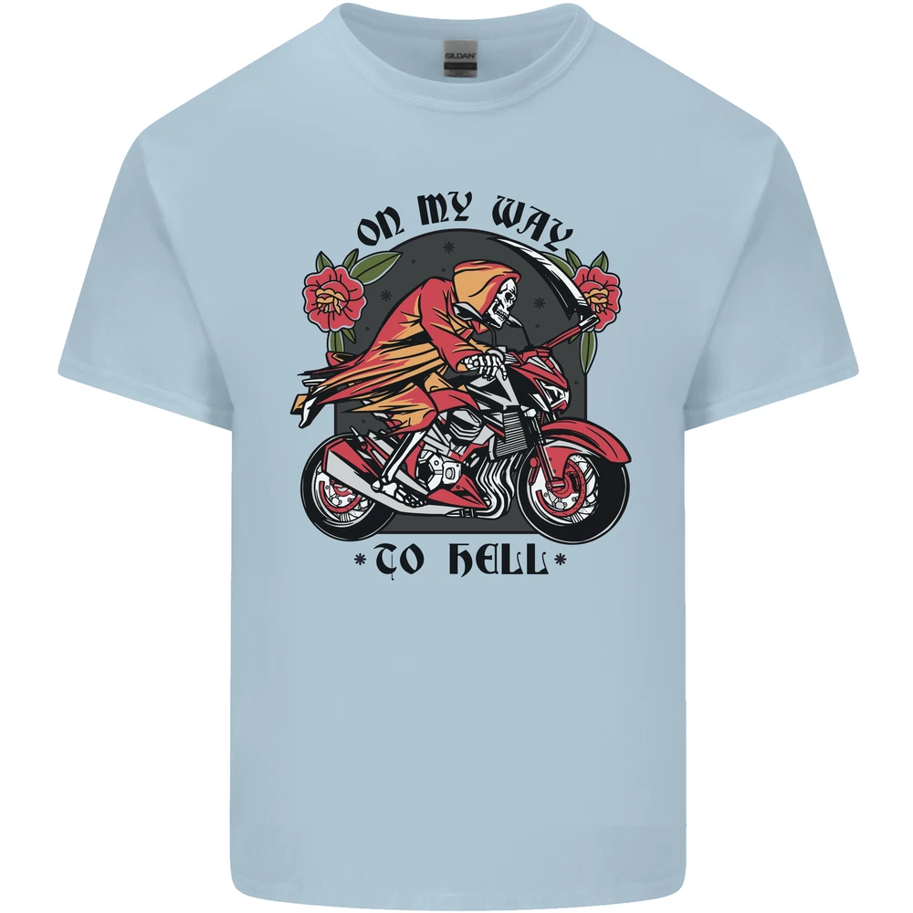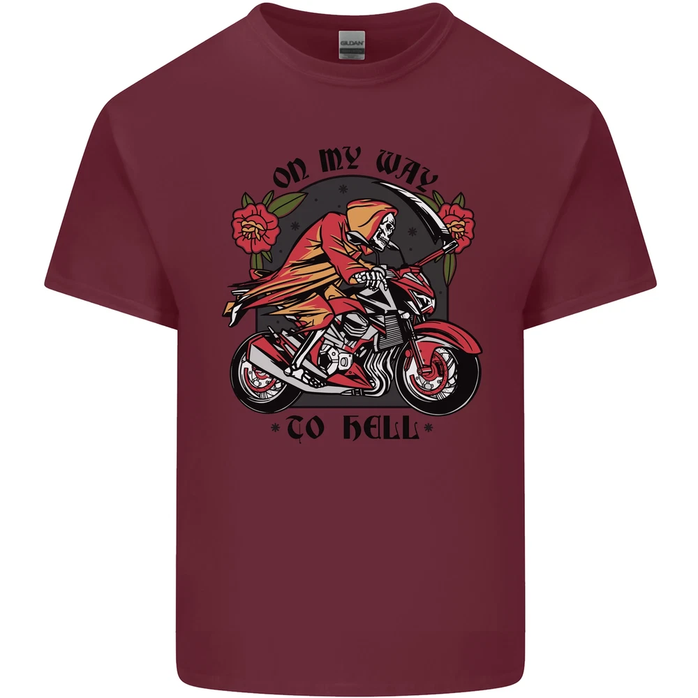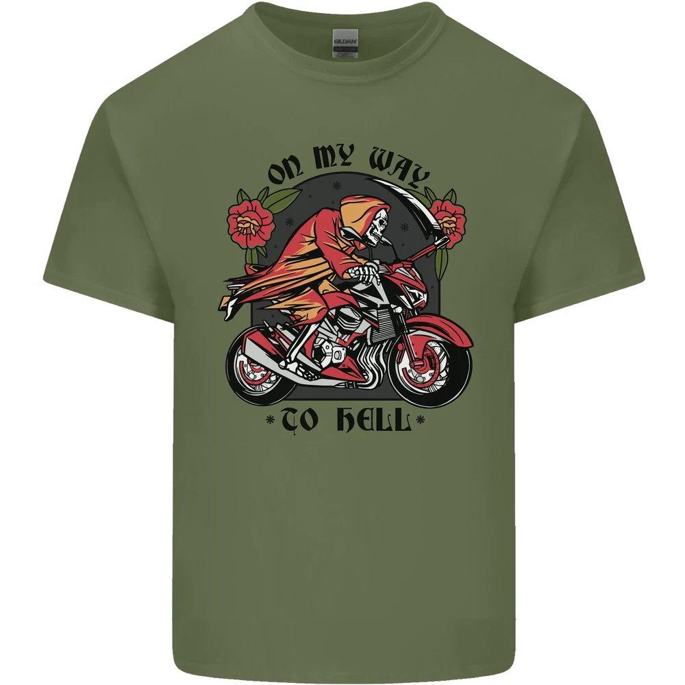 Biker On My Way to Hell Motorbike Skull Mens Cotton T-Shirt Tee Top