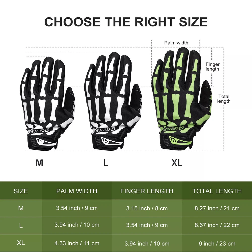 Product Description Goth Full Finger Biker Skeleton Bone Gloves Racing Cycling Motorcycle Mechanics Features These skeleton patterned full finger gloves are specifically designed to provide comfortable compression and support for sport lovers. The durable, thickened silicon palm reduces hand discomfort and calluses. Rubber markings on the index and middle finger tips help improve grip. Built-in stealth vents maintain good ventilation, performance, and temperature Durable, breathable, and sweat wicking Velcro wrist closure Air permeable Soft and warm micro-fleece lining Specifications Color: Black with Skeleton Bones design Materials: Lycra / Polyester / Silicon / Rubber Items Included 1 pair of Skeleton Patterned Biker Gloves Contact Us Dear friend : ● Thank you for your purchase ! ● Your satisfaction is our top goal,we appreciate your patronizing. ● If you have any questions, please contact us before leave negative or neutral feedback,we will try our best to solve the issue to your satisfaction, thanks ! ● If you are satisfied with our service, please rate the details of the transaction (Detailed Seller Ratings) on eBay. ● Please always talk to us via ebay Message. ● We appreciate your business and look forward to growing our e-Bay sales with satisfied customers. Thank you in advance and best regards! Our working time:Monday to Friday (9:00 am to 18:00pm) Contact Us Dear friend : ● Thank you for your purchase ! ● Your satisfaction is our top goal,we appreciate your patronizing. ● If you have any questions, please contact us before leave negative or neutral feedback,we will try our best to solve the issue to your satisfaction, thanks ! ● If you are satisfied with our service, please rate the details of the transaction (Detailed Seller Ratings) on eBay. ● Please always talk to us via ebay Message. ● We appreciate your business and look forward to growing our e-Bay sales with satisfied customers. Thank you in advance and best regards! Our working time:Monday to Friday (9:00 am to 18:00pm) powered by