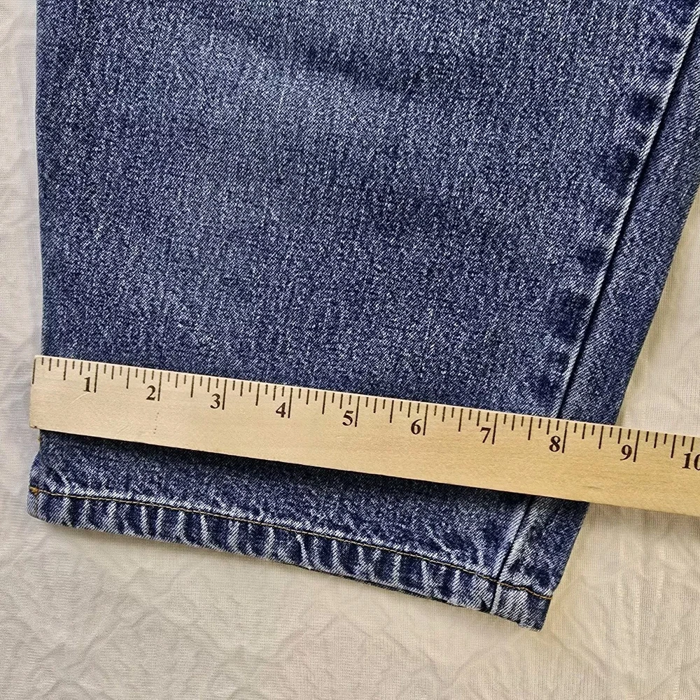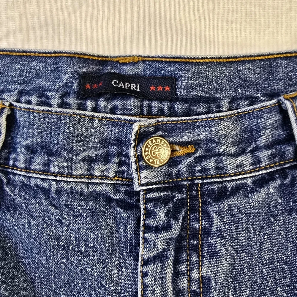 These Bill Blass Women's Mom Jeans Capri in a Medium Wash are a vintage-inspired 90's Y2K fashion piece. Made from 100% Cotton, they feature a solid design with a zip and button closure for comfort. In a size 14, these jeans are a Regular fit and boast classic Mom Capri style with a logo accent. Ideal for Summer, Fall, and Spring, these jeans offer both style and practicality with their pockets and comfortable fabric wash.