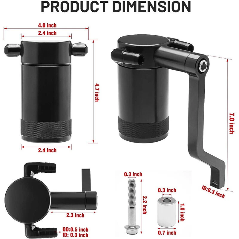 Billet Oil Catch Can 6.4L Kit 5.7 HEMI Z-Bracket For 11-21 Dodge Charger Challen Item Description [Must-Have Oil Catch Can] - The product can repair the PCV system,used on the engine to reduce toxic gases released to the atmosphere and eliminate positive pressure/gas channeling from the crankcase. [New Design] - The Billet Catch Can New billet accessories, new Z-bracket design, easy to open and close simple sealing. The billet capture tank/oil and gas separator will condense and collect the oil vapor before it reaches the intake pipe. [Best Oil Catch Tool] - As gas and oil vapors enter the UPR, they can pass through a chamber filtration system that cools the oil vapors and enables them to adhere. When the oil forms a hole and gathers at the bottom of the upr to capture the tank, it will be discharged. This is where the extra chamber filtration system works, allowing only clean air to pass and avoid gas escaping. [Wide Application] - The Billet Oil Catch Can is a ideal tool to effectively control oil from being sucked through the PCV system, perfectly compatible with 2011- Present 6.4 Chrysler 300,2011- Present 6.4 Dodge Charger,2011-2021 6.4 Dodge Challenger. [Package Content] - 4 oz Capacity, Billet Catch Can, New UPR Z-Bracket, UPR Billet Hose Ends, UPR Black Forged Fittings and UPR Patented Diffuser Upgrade. Specifications Condition:100% Brand New Warranty: 90 Day Free Return:30 Day Fits Engine : 6.4 Type : Oil Catch Can Material : Billet Aluminum Finish : Black Finish Placement on Vehicle : Right Manufacturer Part Number : Catch Can 6.4 Fitment 2011- Present 6.4 Chrysler 300 2011-2021 6.4 Dodge Challenger 2011- Present 6.4 Dodge Charger 2011- 2021 6.4 Jeep Grand Cherokee Also work for 5.7 or 6.2 engine but need adjustment Such as 2015 dodge charger 5.7 6.2 Dodge Charger hellcat. Super charged 2017ram and 2005 ram and 2013 300 c 5.7 Please Double-Check that this is compatible with your vehicle. Package Included 1x 4 oz Capacity Billet Catch Can 1 × Z-Bracket 4 x Billet Hose Ends 2 × 1/2" Braided Hose 2 × Hose Adapter 1 × Long Bolt As pictures show FAQ: I purchased by mistake, how do I cancel the order? Please contact us ASAP. If the item has not been shipped out we can cancel the order for you. If the item was shipped out you can refuse the package and wait for the item to return to us. I received your item but it does not fit or is defective Please contact us so we can assist you on the matter. Buy with confidence Our quality is based on meeting the requirements of the manufacturer and improvement them in design problems manufacture. NOTE: (1)It would be highly appreciated if you might contact us first once you have any problems concerning the items. And you can expect all the issues would be resolved ASAP! (2)Please let us know before you send us the neutral/negative feedback that wont help to finish the issues. And I will definitely try my best to provide the best solutions which would meet our satisfactory! (3)According to the distance of the receipt address items would be sent from CA or NJ