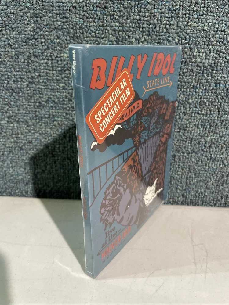This is a Blu-ray disc titled "Billy Idol - State Line: Live At The Hoover Dam" by MVD Visual, featuring a live concert performance by Billy Idol. The runtime is 60 minutes and it is in the Rock genre. It was released in 2023 and is rated accordingly. The disc is Region A and contains music video content.