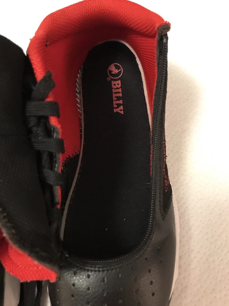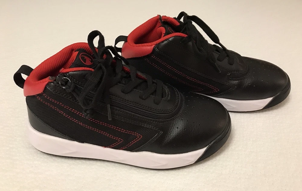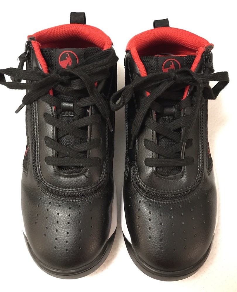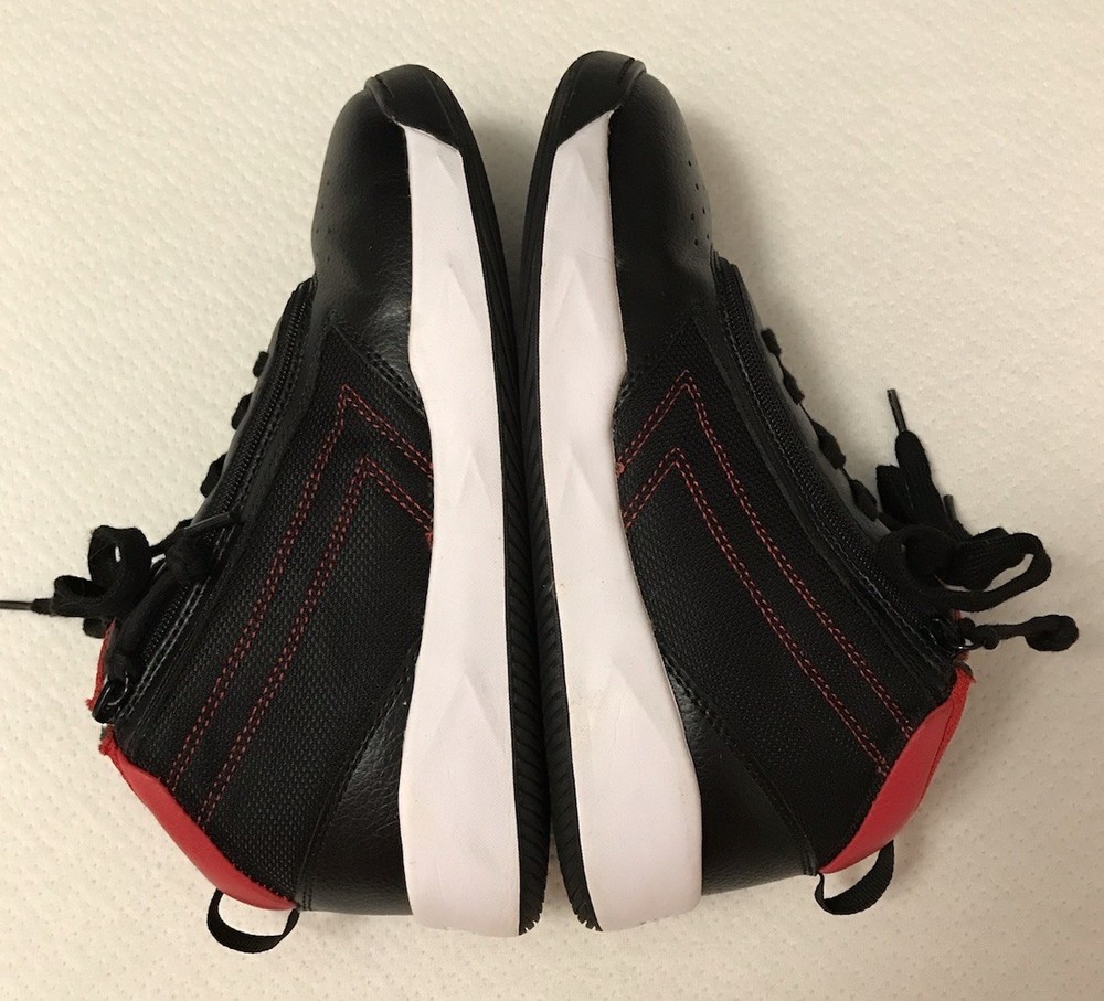 Billy Sport Hoop Kids 5 Wide Sneaker Shoe Zip Closure Mid Top Black Red Vegan
