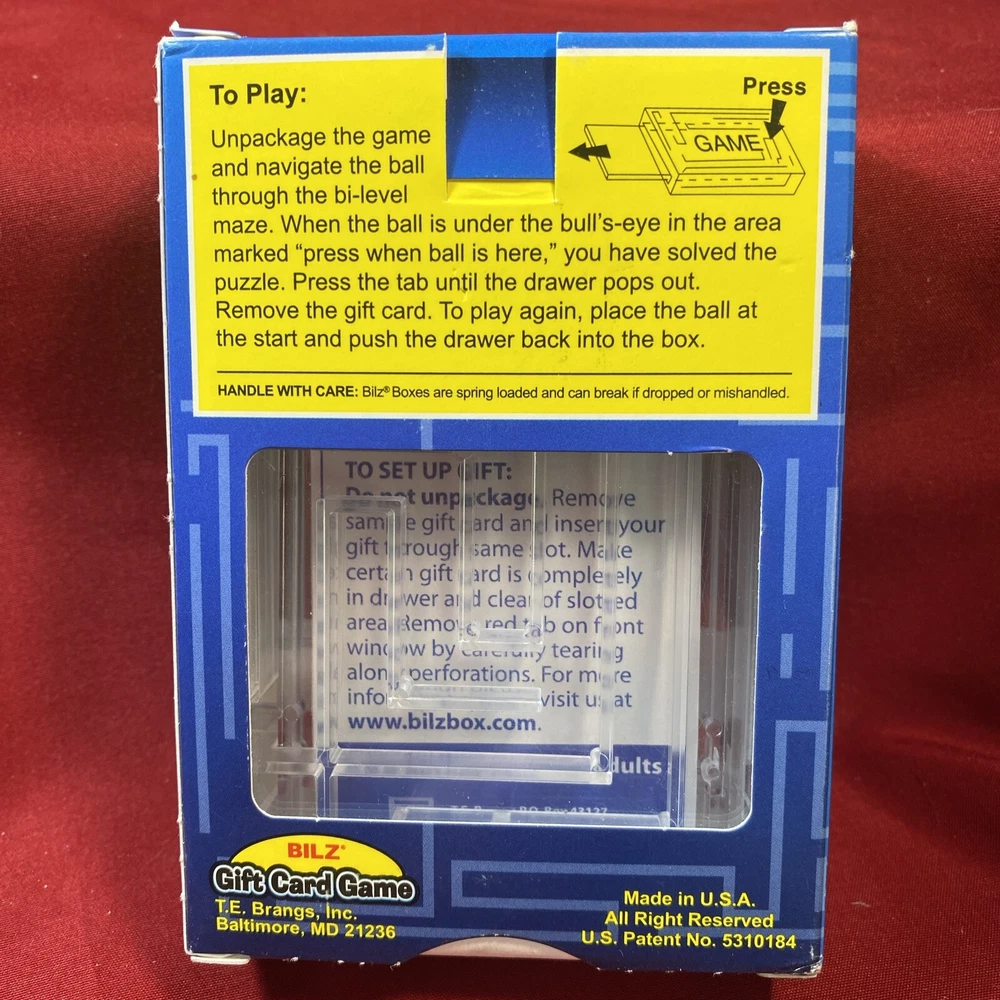 Bilz Gift Card Puzzle - Maze Game Brainteaser Fun Game! Gift Card Holder New. The box has some wear from being in storage. M09