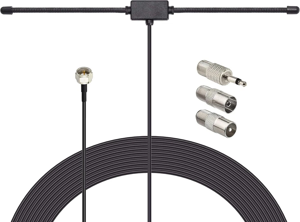 Bingfu FM Radio Dipole Antenna for Stereo Receiver Indoor Pioneer Onkyo Black Product Details Product Dimensions: 6.69 x 4.72 x 0.51 inches Item Weight: 2.89 ounces Manufacturer: Bingfu Country of Origin: China Item model number: BFN00533 Antenna: FM Radio Antenna Brand: BINGFU Color: Black Number of Channels: 1 Impedance: 75 Ohm Maximum Range: 10 Feet UPC: 790404672988 Adhesive Mounting FM Radio Antenna 75 Ohm UNBAL FM Dipole Antenna with Universal Connector and Adapter,for Music System Indoor Radio Bluetooth Stereo Receiver AV Audio video Home Theater Receiver Tuner. Compatible with Yamaha, JVC, Sherwood, Pioneer, Panasonic, Onkyo, Sony, Bose Indoor Sound Radio Home Stereo Audio video Receiver, 75 ohm UNBAL. 10 feet / 3m Coaxial Extension Cable, Antenna Connector Interface: F Type Plug Connector; Included Connector Adapter: TV Female Socket Connector Adapter, 3.5mm Audio Plug Connector Adapter, TV Male Plug Connector Adapter; Easy to install; Adhesive Wall Mounting, Improves FM Radio Stereo Reception; Package List: 1 x Antenna, 3 x Connector Adapters;(As the Picture Shown)