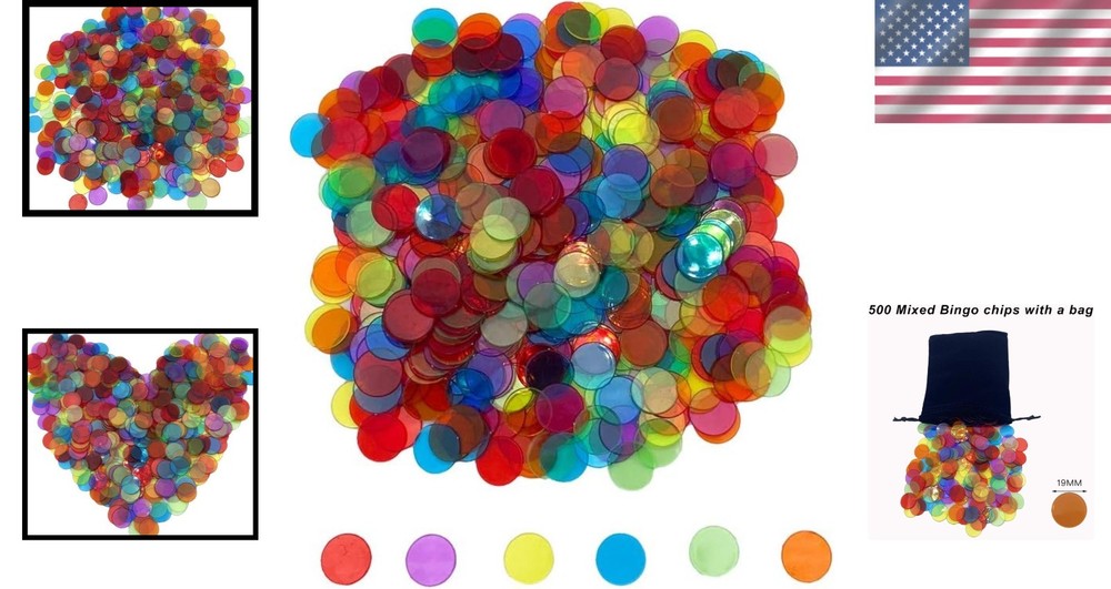 Bingo Counting Chips 3/4 Inch 6 Colors 500 Pack with Storage Bag ‹ › ‹ › ‹ › ‹ › ‹ › ‹ › ‹ › Enhance your educational activities, games, or organizational projects with these durable and reusable translucent plastic counters. Designed to keep numbers visible while providing a sturdy cover, these counters are ideal for teaching, learning, and play. The set includes 500 pieces in six vibrant colors—red, yellow, blue, green, orange, and purple—with a random mix ensuring variety and visual appeal. Each piece measures 3/4 inch in diameter, making them easy to handle and maneuver for children and adults alike. These versatile counters are perfect for classroom use, including counting, sorting, and number recognition exercises, as well as playing bingo or filling sensory bins. They come conveniently stored in a black bag, making organization and transport simple and efficient. Whether for educational purposes or fun activities, these counters offer practicality and colorful appeal for teachers, parents, and caregivers. < hidden >educational counters, classroom supplies, counting manipulatives, sensory play, bingo game pieces, sorting tools, reusable counters, teaching aids, children’s activities, colorful counters Shipping Free & Fast Shipping - We offer free shipping to most of the USA with a normal delivery time of 3-7 days. However, due to the current situation, additional delivery time (up to 3 weeks) may be required for some items. Alternative Carriers - We may use alternative carriers (e.g. USPS, FedEx, UPS, etc.) to ensure your package arrives safely and on time. Due to the use of multiple carriers, we are unable to provide a tracking number automatically. Handling Time - Orders are processed and shipped within 1-2 business days of receiving cleared payment. Shipping Restrictions - Shipping to Alaska, Hawaii, Puerto Rico, Guam, and other US territories may incur shipping charges or delivery restrictions. Please contact us before ordering, or your order can be refunded/cancelled. State Restrictions - There may be restrictions based on your state of purchase. For example, certain items may not be shipped to California due to state regulations. Contact for Tracking Updates - If you require tracking updates or have any concerns about the delivery of your order, please feel free to contact us, and we will be happy to assist you. Return 30-Day Hassle-Free Returns - We want you to be completely satisfied with your purchase. If you are not, you can return the item within 30 days of receiving it for a full refund or exchange. Easy Return Process - To start a return, simply contact us and we will provide you with a prepaid return shipping label and detailed instructions. Restocking Fee - There are no restocking fees for returns. However, the buyer is responsible for return shipping costs if the return is not due to a seller's error. Refund Processing Time - Refunds will be processed within 5 business days of receiving the returned item in its condition. Payment We accept all major credit cards, PayPal, and Apple Pay for your convenience. Your payment information is secure and encrypted to ensure a safe and seamless transaction. Please complete your payment within 3 days of purchase to avoid any delays in shipping. Feedback Your feedback is extremely important to us. We strive to provide the best products and customer service possible. If you are satisfied with your purchase, please take a moment to leave us a positive review. If you have any concerns or issues with your order, please contact us before leaving negative feedback. We are committed to resolving any problems and ensuring your satisfaction. Contact Us If you have any questions or concerns, please feel free to out to our customer support team. You can contact us through the eBay messaging system. We are available Monday to Friday, 9:00 am to 5:00 pm EST, and we will do our best to respond to your inquiry within 24 hours. Buy it now and enjoy a pleasant shopping experience! Recommended Age Range: Teen MPN: Bingo_Counting_Chips Character Family: Bingo Counting Chips