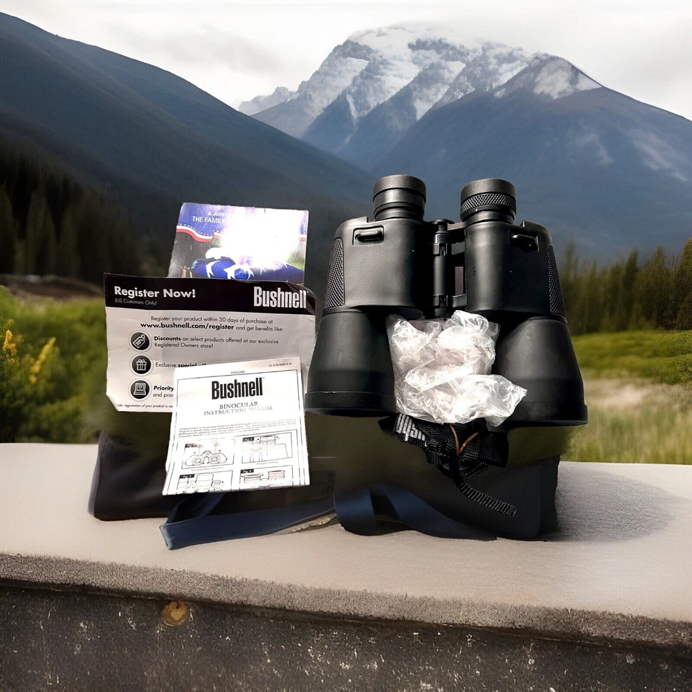 These were mine. I bought them new maybe 13 years ago and never ever used them. I never opened the box until I photographed them. They are real binoculars and not those cheap toys. The box looks rough around the edges from going back and forth in my gun safe. Thanks for looking. Find your perfect view with these Bushnell Powerview binoculars. With a 20x maximum magnification and 50mm objective lens diameter, you'll be able to see every detail you need for your hunting, birding, or general purpose activities. The anti-reflection coating ensures that you'll have a clear and unobstructed view, while the porro prism optical design provides a comfortable and stable view. These full-size binoculars are made by the trusted brand Bushnell, and are proudly made in the USA.
