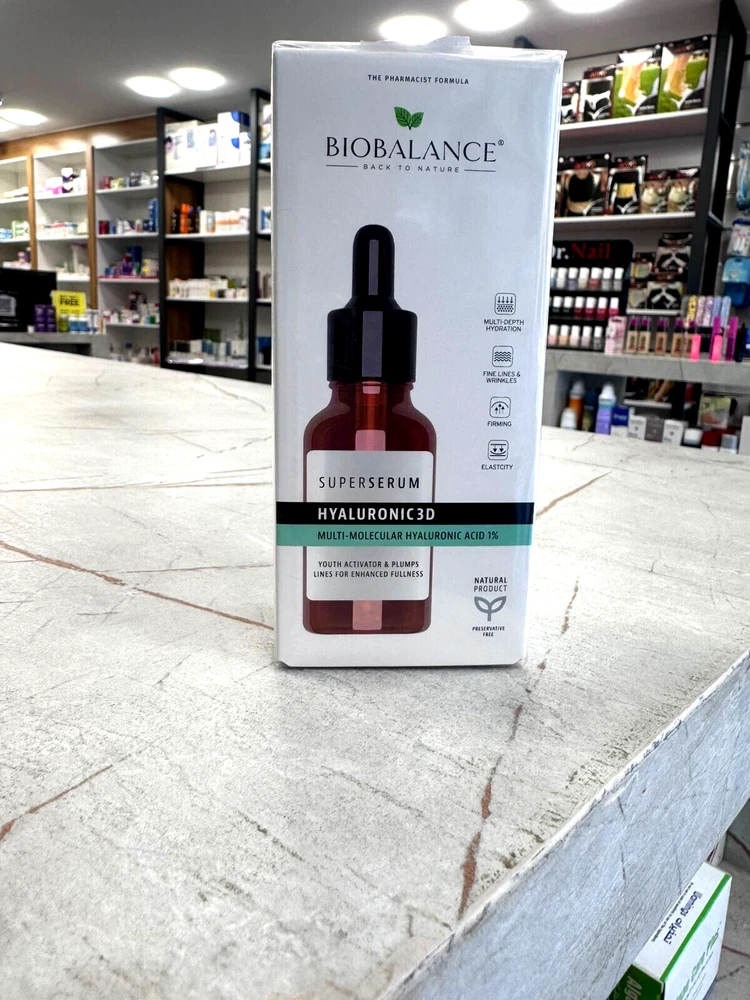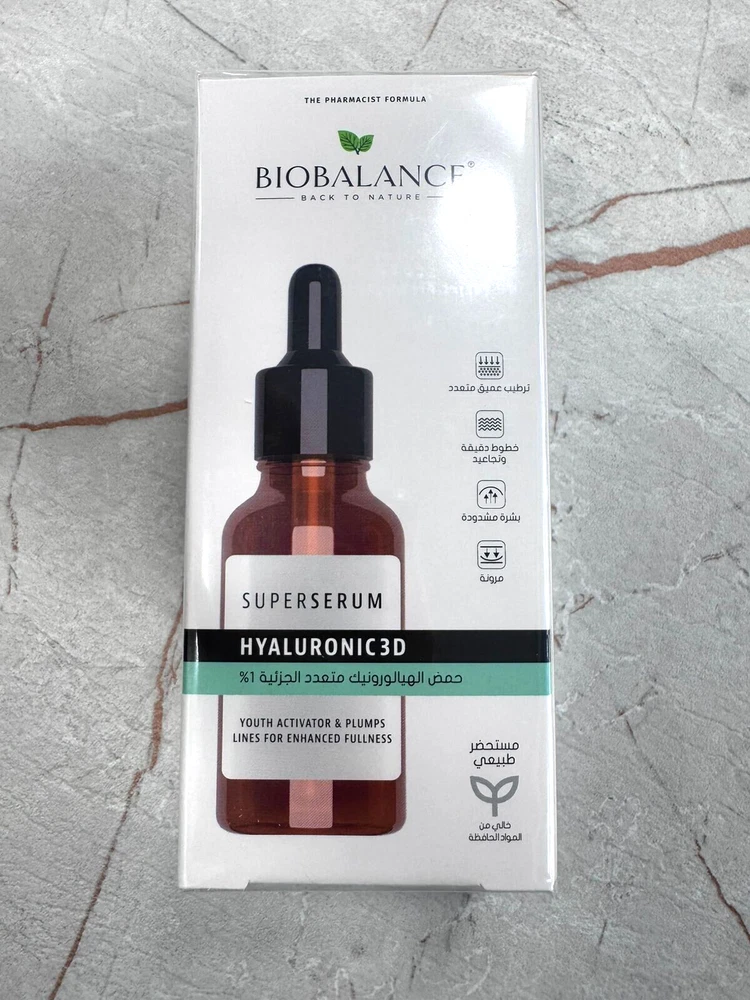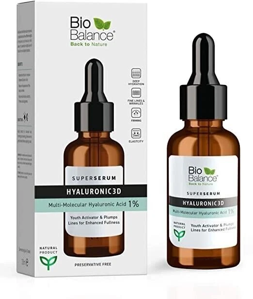 Brand: BIO BALANCE Size: Regular Type: SUPER SERUM Expiration Date: 2028 Formulation: Serum Body Area: Face Active Ingredients: Hyaluronic Acid Department: Unisex Skin Type: All Skin Types Volume: 30ml Features: All Natural Ingredients, PRESERVATIVE FREE Main Purpose: Firming, Multi- Depth Hydration, Fine Lines & Wrinkles, Elast