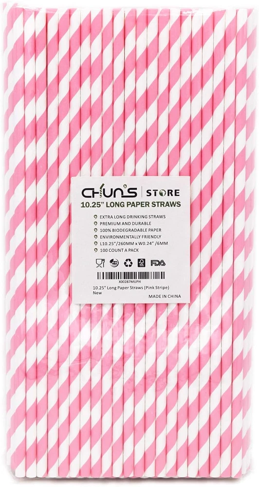 Store New Arrivals Add to Favorite View Feedback Contact Biodegradable Pink Paper Straws for Drinking - 10 Inches Long, 0.24" Diameter, Pack of 100 Description Item model number 32-5VQ4-2TGH Unit Count 100.0 Count Number of Items 100 Color Pink Stripes Material Paper Country of Origin China Item Weight 5.3 ounces Size 10 Inch (Pack of 100) Special Feature Biodegradable Product Dimensions 10.25 x 0.24 x 0.24 inches Disposable long paper drinking straws. Measures 10.25" long, 0.24" wide (standard straw hole size) 10 inch long straws designed to be tall enough for 20oz to 32oz tumblers/mugs/cups/glasses/bottles Sturdy and Durable. Premium paper drinking straws made to top quality and last for hours in drinks! 100% Biodegradable and Compostable. Save Turtles! Eco-friendly to our earth and marine llife Pack of 100 counts. Best for water/soda/tea/cocktail/iced coffee (Not for Smoothie or Thick Drinks) Product Description Features 10.25 Inch Long Paper Straws Our 10.25" long paper straws are 2.5 inch taller than standard paper straws. Making them perfectly fitted for 20oz to 32oz tall tumblers / mugs / cups / glasses / bottles Regular Diameter 0.24“ / 6mm With an outer diameter of 0.24“ and inner diameter of 0.22”, these paper straws are perfect size for water / soda / tea / cocktail / iced coffee (Not for Smoothie or Thick Drinks) Made to Top Quality Our sturdy paper straws are finely constructed by 3-ply durable paper. They are made to top quality, designed to hold up for hours without disintegrating. A minimum durability of 1 hour is guaranteed 100 Count | Unwrapped | Pink Striped Chunspak 10 inch long paper straws come unwrapped for a convenient service. Pack of 100 counts in a clear bag. We offer twelve vibrant classic colors for customers to choose Chunspak 10.25 Inch Long Paper Drinking Straws Ideal for Regular Beverage (Not for Thick Drinks) Perfect to use at Home, Bars and Restaurants A convenient, enjoyable and green lifestyle ABOUT US We offer the best prices around on high quality products. Our E-store includes media such as books, movies, music and games while offering electronics, toys, sporting apparel, clothing, tools, general home, garden items and more. SHIPPING We are always working hard to ensure your package arrives as soon as possible. Please understand that some factors like weather, high postal traffic, and the performance of shipping companies are outside of our control. We offer free shipping to the lower 48 states and ship within 2 business days of payment, usually sooner. We do not accept P.O. Boxes. Please provide a physical address. For shipping outside of the continental USA, we only use eBay's Global Shipping Program.The item is shipped to KY and then sent to the rest of the world. International customers are responsible for all duties and taxes. Continue to check out in order to calculate costs for shipping the item to your country. Messages regarding eBay's Global Shipping Program MUST be directed at eBay EXCLUSIVELY. RETURNS We offer a 30-Day Return Policy on items which you are not completely satisfied with. You have the option for a full-refund or an exchange of the item. No returns are available on items shipped outside of the USA. PAYMENT We accept PayPal. CONTACT US This page content is yet to come Please ad us to your favorite seller and visit again later Thank You CUSTOMER SATISFACTION We try our very best to make sure every customer is completely satisfied. If there's a problem, message us! We're happy to help. WE ACCEPT Copyright © 2021 AutoDS. | All Rights Reserved
