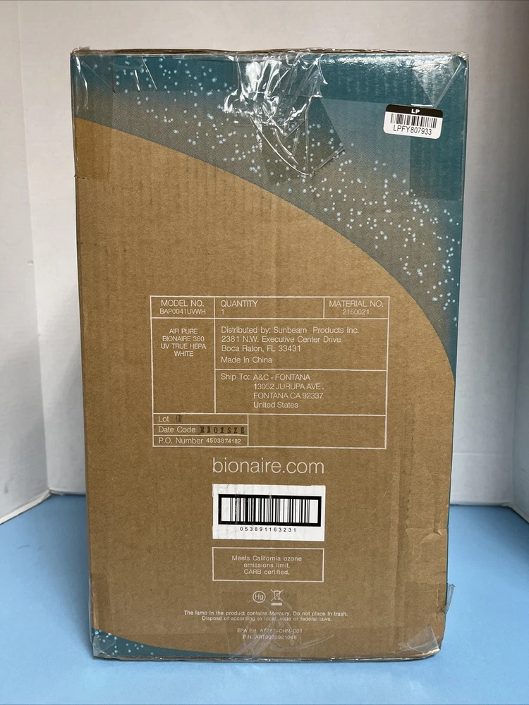 Bionaire Essence 360 Air Purifier w/ UV Light up to 840 sq feet, True Hepa brand new and unused, we got this from a target truckload and I just wanted to check the contents and take a picture of the item since the box is not in perfect condition FREE SHIPPING If you have any questions about an item feel free to ask us. We are happy to communicate with you. We want you to be 100% happy with your purchase Items are carefully inspected for your satisfaction Most items are not in perfect boxes or packaging If you are unsatisfied with your item after your purchase is made, contact us before contacting eBay customer service as we can work out an immediate resolution Payment is due within 48 hours of purchase. We strive for same day or 1 business day handling on all purchases. Business days are Monday-Friday, 8am-5pm, excludes all government holidays. Packages are picked up Monday-Friday, 12pm - 2 pm, orders made after pickup, will be shipped next business day Packages refused at delivery will be charged shipping cost unless package arrives damaged