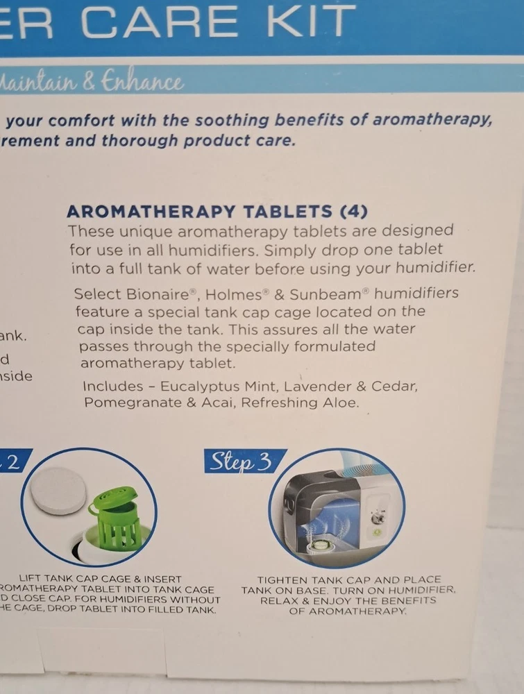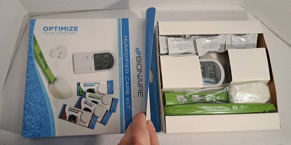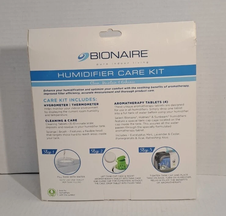 Aromatherapy Cleaning Tablet Brush Bionaire Humidifier Care Kit Hygrometer I opened Box to photograph only Box has some wear Please view all photos zooming in on them as they are part of the description for you to judge condition