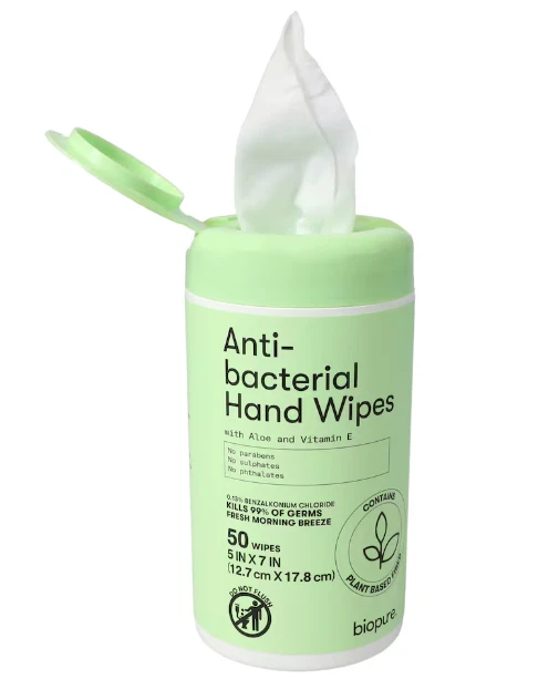 Color: Green Brand: Biopure Type: Hand Sanitizer Wipes gtin13: Does not apply Features: Antibacterial, With Vitamin E UPC: Does not apply