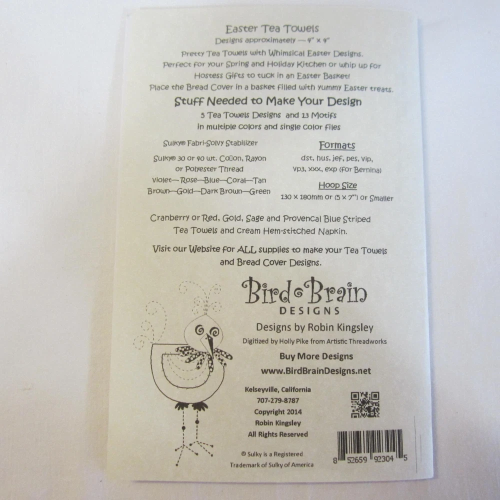 Bird Brain Designs Easter Tea Towels machine embroidery CD by Robin Kingsley