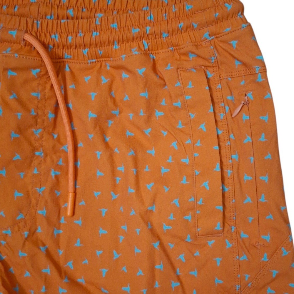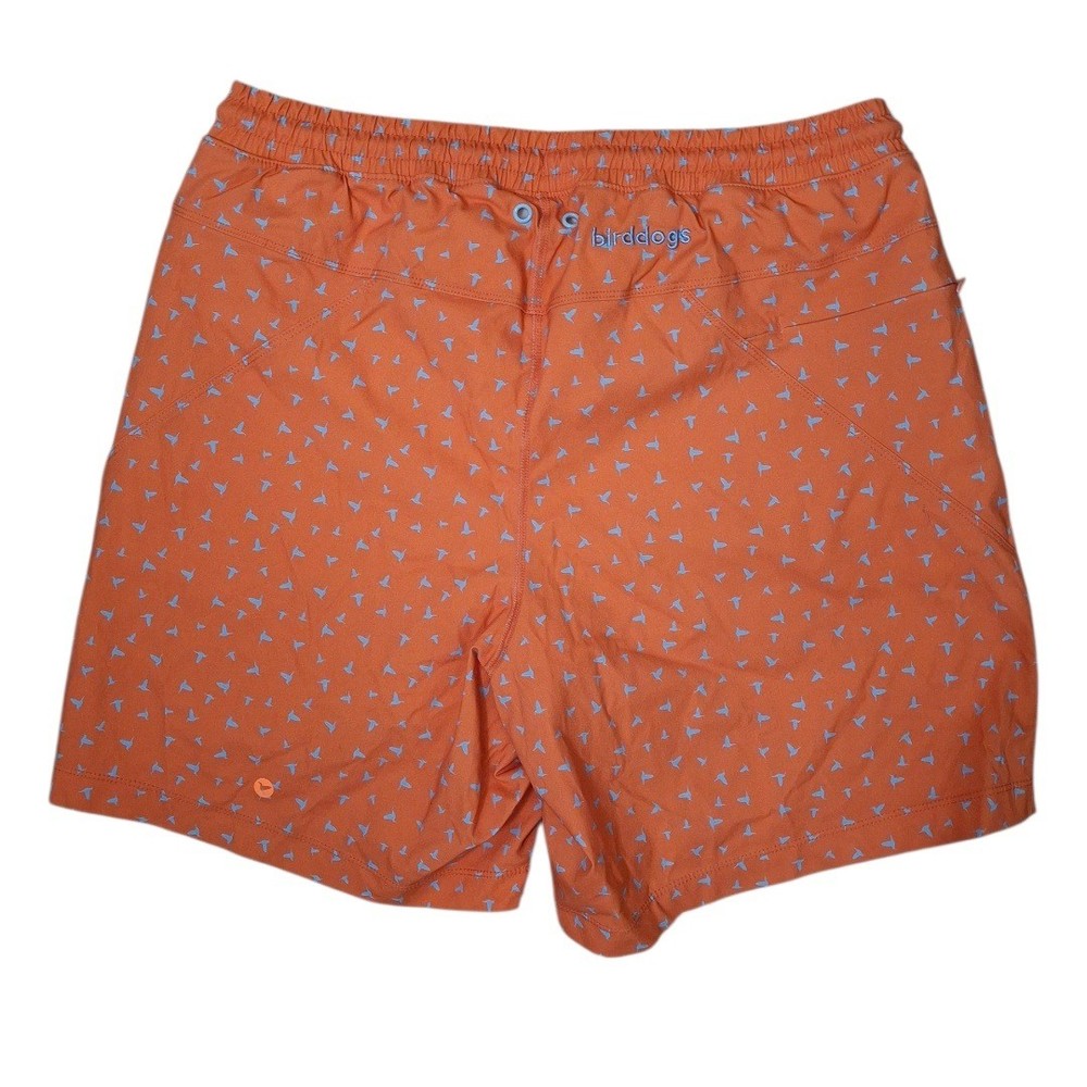 Discover ultimate comfort and playful style with these Bird Dogs athletic shorts. Vibrant orange fabric is adorned with a charming all-over print of blue birds, bringing a touch of whimsy to your activewear. Designed for performance and relaxation, these shorts feature a comfortable elastic waistband with an adjustable drawstring for a perfect fit, along with convenient pockets, including a zippered pocket for secure storage. Ideal for a beach vacation, a casual day out, or your favorite outdoor activities. Measurements: • Waist to hem: 16 in • Inseam: 7 in Department: Unisex Adults Style: Athletic Performance/Activity: Beach, Water Sports Fabric Type: Blended Fabric Theme: Novelty Features: Pockets, Drawstring, Elastic Waist Fit: Classic Material: Nylon, Elastolefin Occasion: Activewear, Casual Pattern: Geometric Closure: Drawstring Season: Summer Keywords: Bird Dogs shorts, athletic shorts, men's shorts, orange shorts, bird print, swim shorts, leisurewear, activewear, summer shorts, comfortable, lightweight, casual shorts