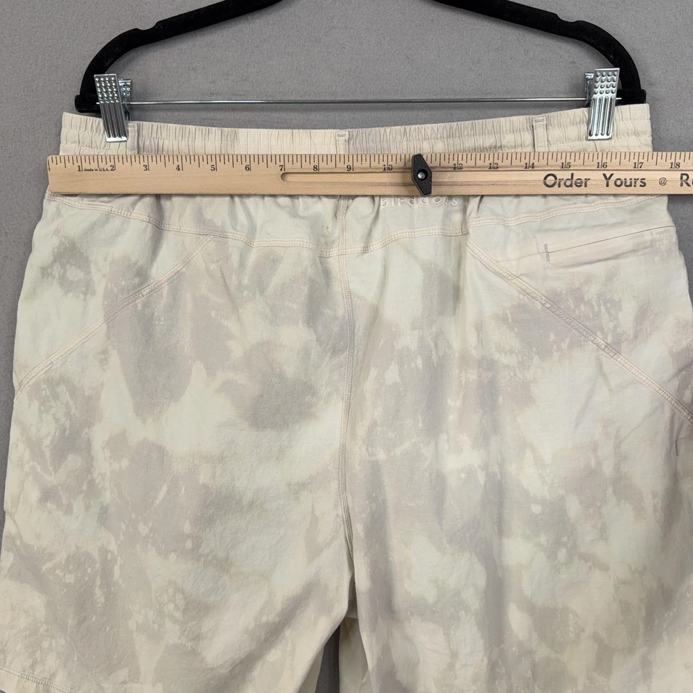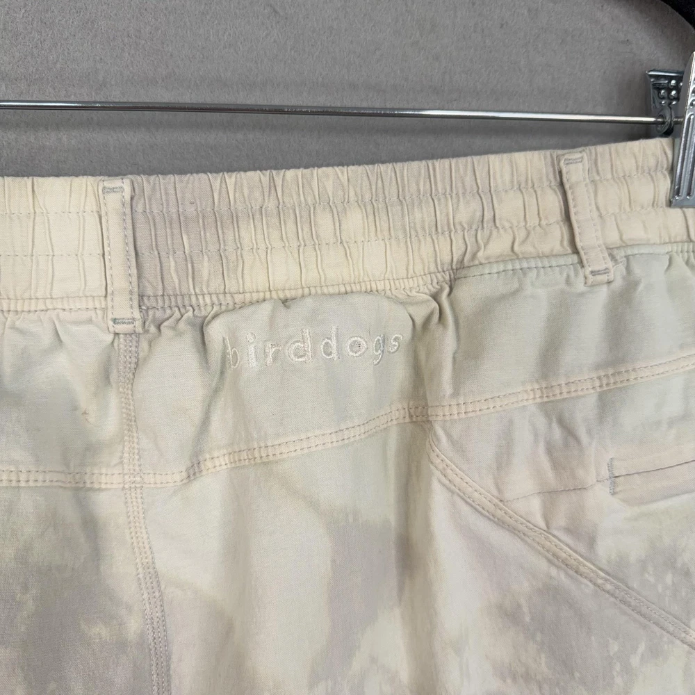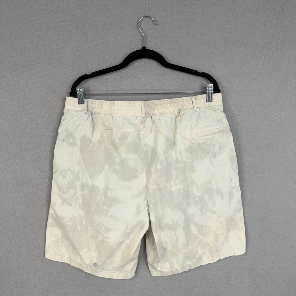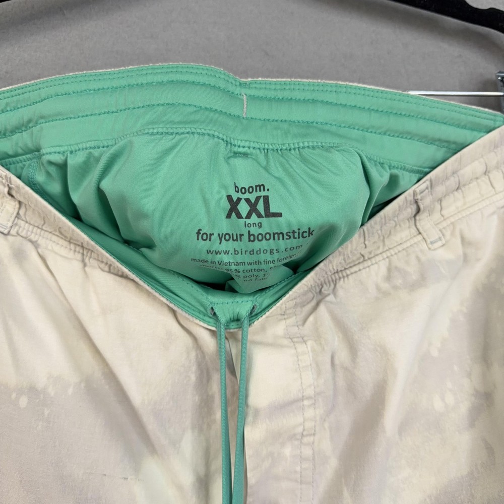 Birddogs Shorts Mens 2XL Beige Camo Lined Athletic Drawstring Zip Pockets Custom bleaching throughout. Pre-owned birddogs lined shorts with light overall wear from prior use. Small faint dark mark on the front left thigh, a light mark near the back hem by the logo, and a small spot below the rear waistband as shown in photos. Fabric, seams, waistband elastic, liner, and zippers are intact and fully functional. Brand: Birddogs. Style: Mens lined athletic shorts with elastic waistband and built-in compression liner. Size: Mens 2XL per interior printed waistband label. Material: Shorts 95% cotton, 5% spandex; girdle 88% polyester, 12% spandex per interior content label. Fabric type: Lightweight woven stretch outer fabric with smooth knit performance liner. Details: Pull-on elastic waistband with exterior drawstring, slash front hand pockets, right side vertical zip pocket, and back right welt pocket. Features: Built-in supportive liner for added coverage, breathable blended fabrics, stretch construction for ease of movement, and secure zip pocket storage for small essentials. Branding and logos: Embroidered birddogs script logo at the back waistband, small round logo at the back hem, and printed interior birddogs branding and care information. Country of origin: Made in Vietnam. Intended use: Versatile mens shorts suitable for running, gym workouts, cross-training, and casual warm-weather wear. Special notes: Longer inseam athletic design offers comfortable coverage while remaining lightweight for active and leisure activities. 25212 Measurements: Previous washings may change sizing on the tag. Refer to photos above for all measurements. Compare our measurements to one of your favorite garments. Measurements are approximate. All items are bagged and sealed after being photographed, then stored in a smoke free environment. Washed per eBay standards. I carefully package and ship daily. Contact me with any questions. Thanks