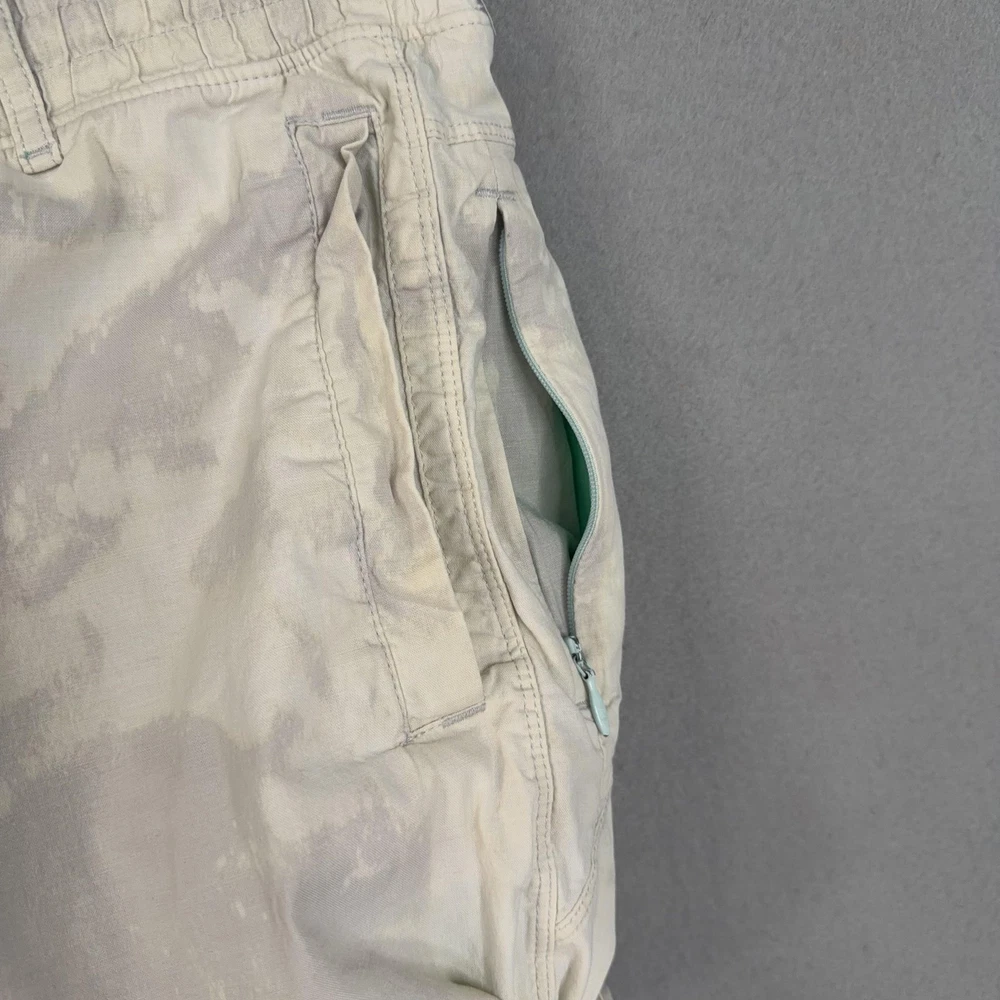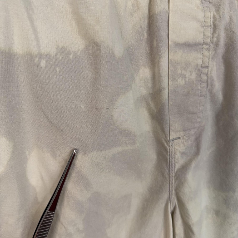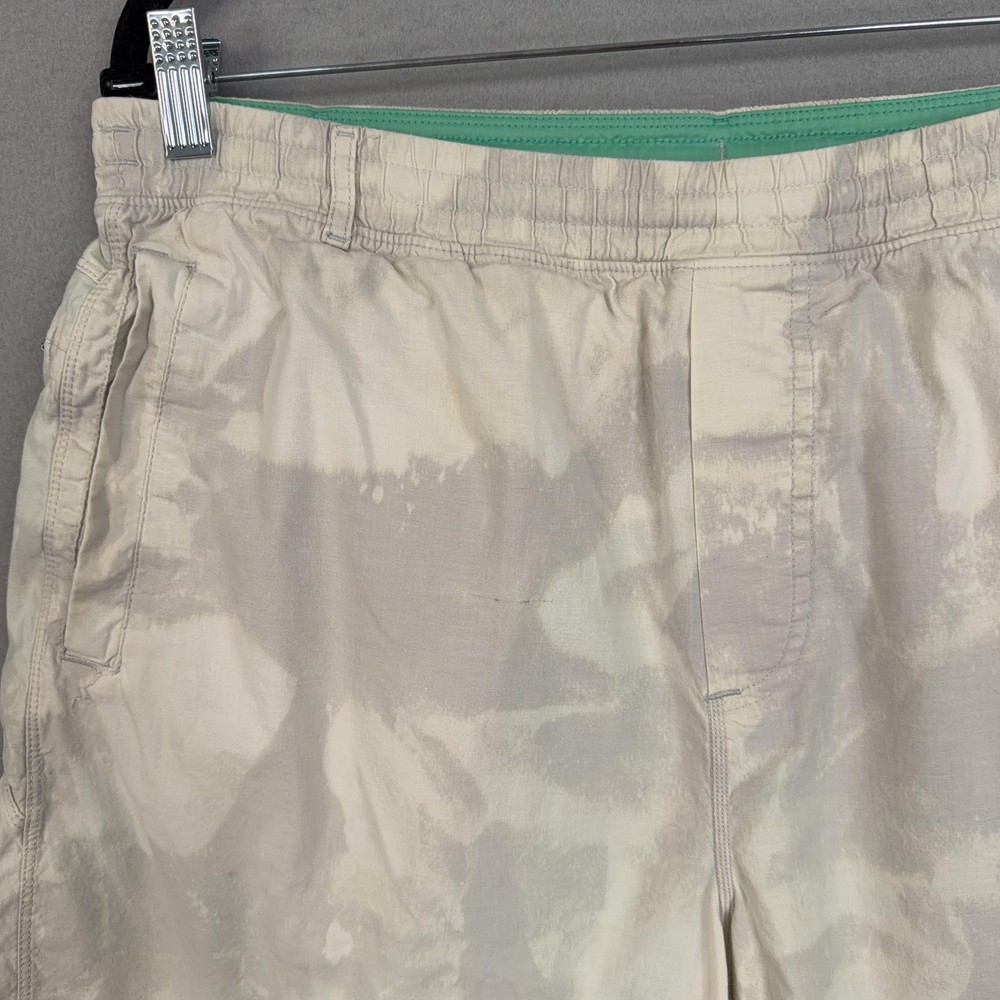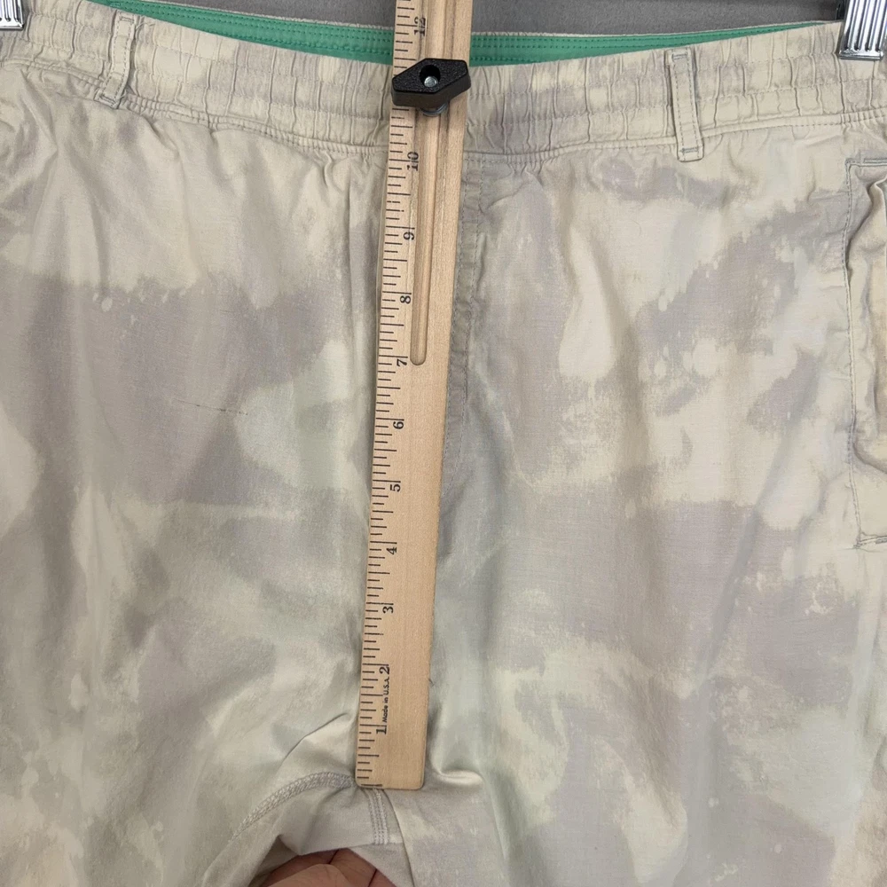 Birddogs Shorts Mens 2XL Beige Camo Lined Athletic Drawstring Zip Pockets Custom bleaching throughout. Pre-owned birddogs lined shorts with light overall wear from prior use. Small faint dark mark on the front left thigh, a light mark near the back hem by the logo, and a small spot below the rear waistband as shown in photos. Fabric, seams, waistband elastic, liner, and zippers are intact and fully functional. Brand: Birddogs. Style: Mens lined athletic shorts with elastic waistband and built-in compression liner. Size: Mens 2XL per interior printed waistband label. Material: Shorts 95% cotton, 5% spandex; girdle 88% polyester, 12% spandex per interior content label. Fabric type: Lightweight woven stretch outer fabric with smooth knit performance liner. Details: Pull-on elastic waistband with exterior drawstring, slash front hand pockets, right side vertical zip pocket, and back right welt pocket. Features: Built-in supportive liner for added coverage, breathable blended fabrics, stretch construction for ease of movement, and secure zip pocket storage for small essentials. Branding and logos: Embroidered birddogs script logo at the back waistband, small round logo at the back hem, and printed interior birddogs branding and care information. Country of origin: Made in Vietnam. Intended use: Versatile mens shorts suitable for running, gym workouts, cross-training, and casual warm-weather wear. Special notes: Longer inseam athletic design offers comfortable coverage while remaining lightweight for active and leisure activities. 25212 Measurements: Previous washings may change sizing on the tag. Refer to photos above for all measurements. Compare our measurements to one of your favorite garments. Measurements are approximate. All items are bagged and sealed after being photographed, then stored in a smoke free environment. Washed per eBay standards. I carefully package and ship daily. Contact me with any questions. Thanks