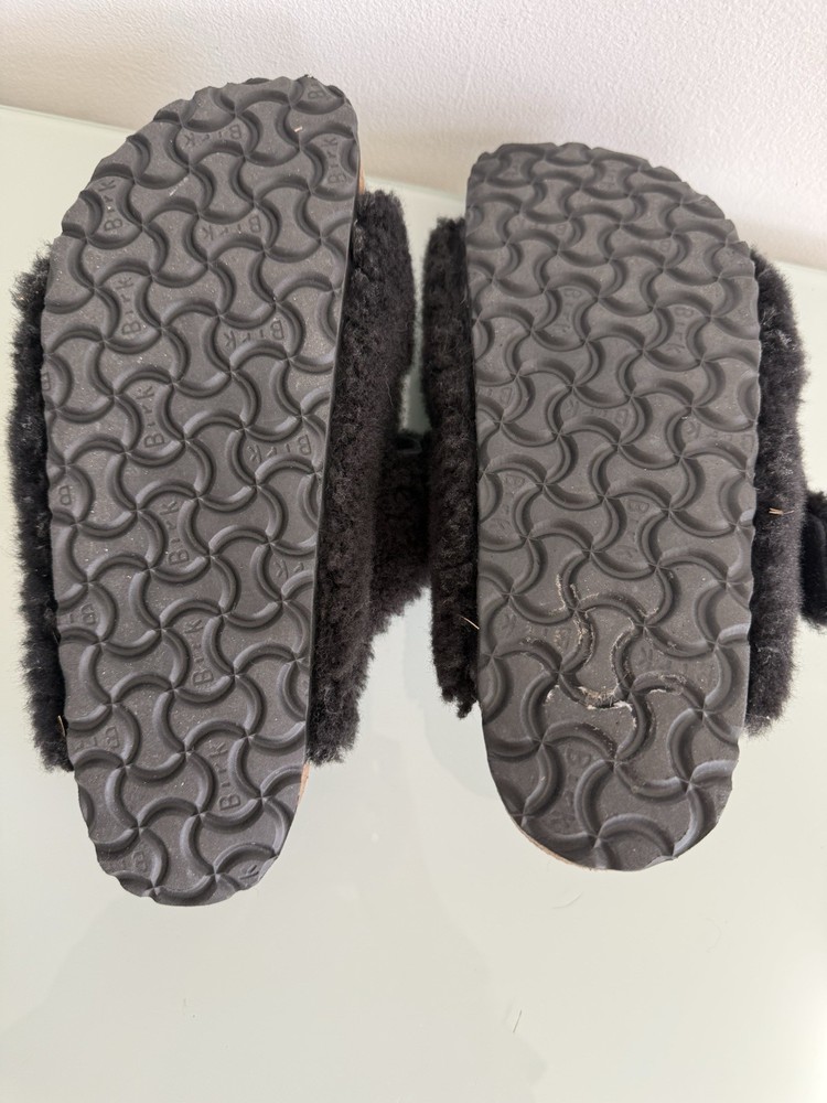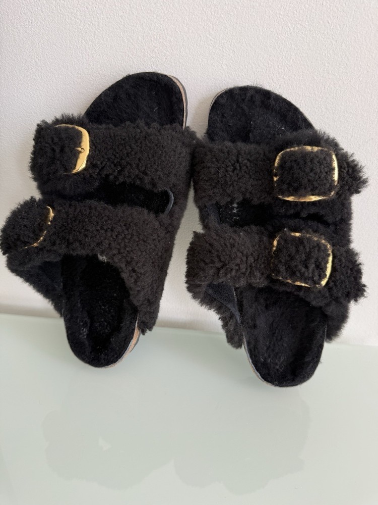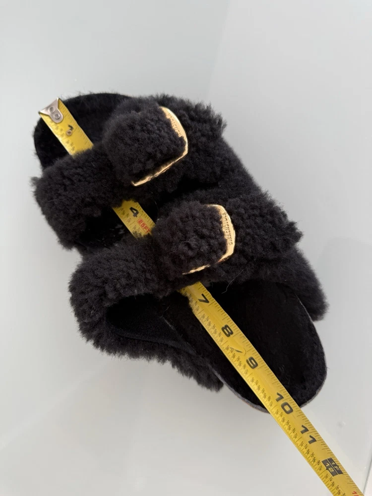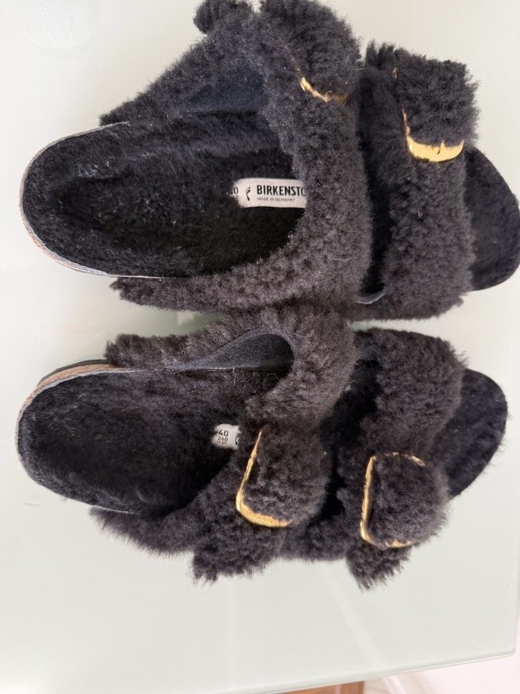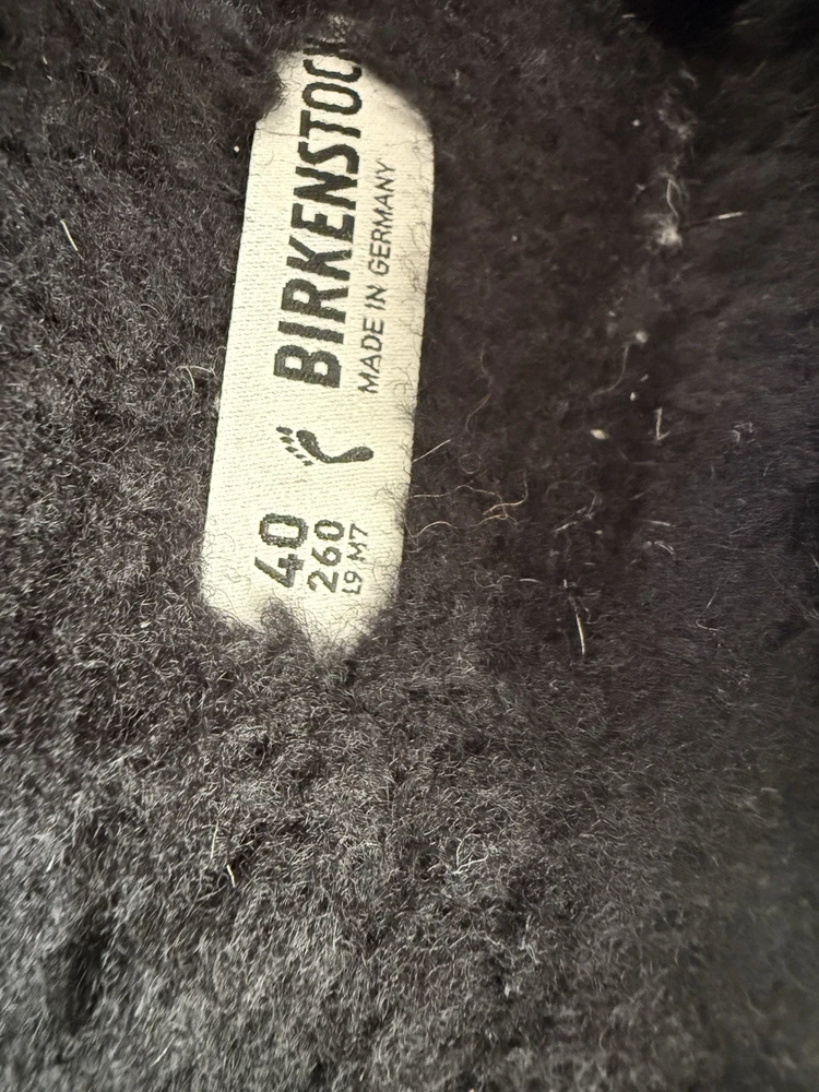 ✿ Birkenstock Shearling Slippers Size 40 Black Suede Made in Germany EU40 Wool!. Состояние товара: Pre-owned - Excellent. Отправлен: USPS Ground Advantage. Authentic Birkenstock shearling slippers made in Germany. Soft suede upper with warm natural wool shearling lining and supportive cork footbed. Classic two-strap design with adjustable buckles and durable outsole for indoor and light outdoor wear. These slippers are in excellent condition. Clean interior, solid straps, and very good sole tread. Please review all photos for details. Brand: Birkenstock Style: Shearling Slippers Gender: Unisex Size: EU 40 / US Men 7 / Women 9 (approx) Color: Black Upper Material: Suede leather Lining: Natural wool shearling Footbed: Cork / latex Sole: EVA Country: Made in Germany Condition: Excellent condition Perfect for winter comfort, cozy home wear, cabin lifestyle, or gift. Keywords: birkenstock shearling slippers, birkenstock wool slippers, german made slippers, suede house shoes, winter comfort footwear, birkenstock size 40.