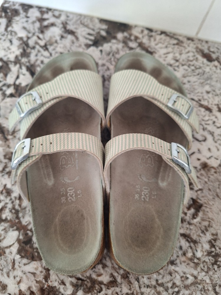 These Sandler run smaller that the stated size. This could be due to the brand possibly. Condition 10/10. Packaging 10/10. Time of arrival 10/10. Over all my experience with this seller 10/10. I’d buy again from seller.