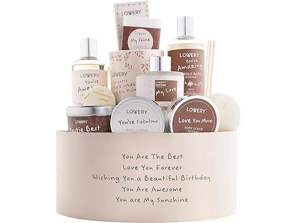 Birthday Bath and Spa Gift Basket Condition: New Features THE GIFT OF LUXURY - Make your loved ones' birthdays the best day of their lives by giving them this Deluxe Bath and Spa Box that contains everything they need from Head to Toe to enjoy a relaxing Home Spa. Each item in this set has written sayings Blessing the Celebrant. Let them indulge in an invigorating bath that will help them free their Mind, Body and Soul from tension and stress. A COMPLETE BATH SET - No more choosing from one gift over another as our Gift Boxes pack all the Bath and Beauty Essentials she will surely love. Each set comes with Shower Gel, Bubble Bath, Bath Salt, Handmade Soap, Shower Steamer Tablet, Bath Bomb, Body Lotion, Body Scrub, Happy Birthday Mug, Soy Candle, Essential Oil Diffuser and 3 Reed Sticks. ELEGANT HAPPY BIRTHDAY MUG - Aside from the Premium Spa Kit, our Birthday Gift Sets also arrive with a Happy Birthday Mug. It is exquisitely crafted from good wishes sayings. This just makes your present complete and extra special - an all-in-one gift pack! ALL-NATURAL FORMULATION - Our Bath Spa Kit is formulated with all-natural ingredients, including Vitamin E and Shea Butter, which leave skin luxuriously scented, smooth, and hydrated. It also helps prevent dryness and flakiness and keeps skin moisturized and supple – ideal for women's delicate skin. Plus, it is suitable for most skin types. GIFT-READY PACKAGING - Lovery ensures that every Bath Set is ready to go as a gift without any additional wrappers. The Customized Birthday Packaging alone is enough to gain great impressions from the celebrant. It comes with a ribbon and hangtag for you to writer her a personalized message. We want to be part of every birthday celebration. That is why we are sending our warm greetings to your loved ones: "You're Awesome!" Specs In the box: (1) Birthday Bath and Spa Gift Basket Includes: (1) 200ml Shower Gel (1) 200ml Bubble Bath (1) 50ml Body Lotion (1) 50ml Body Scrub (1) 100g Bath Salt (1) 100ml Diffuser (1) Reed Diffuser Stick (1) 50g Soy Candle (1) Happy Birthday Mug Cup (1) 30g Steamer Tablet (1) 100g Handmade Soap (1) 150g Bath Bomb (1) Gift Box