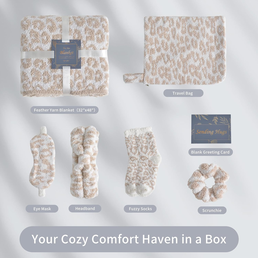 Store New Arrivals Add to Favorite View Feedback Contact Fast deliveries to the customer's home Quality customer service John Make the customers happy! Birthday Box Care Package Get Well Soon Gift Baskets Self Care Gifts for Women, Birthday Gift Basket for Her, Leopard Print Gifts for Women Mom Wife Daughter Sister Friends Leopard Khaki Description Unique Birthday Gifts for Women: Ultra Soft Cozy Gift Basket for Women, also idea as get well gifts for women, thinking of you gifts for women, thank you gifts for women,self care gifts for womem, relaxing gifts for women. If you are looking for a luxury gift baskets for your loved ones, this is the best gift set for mom, sister, daughter, grandma, girlfriend, wife, teacher. Get Well Gifts for Women - JOOJA gift basket for women after surgery, women friendship gifts; Relaxing self care gift box - (1)Soft half throw blanket for couch or travel blanket, lap blanket; (2)Fuzzy Socks (3)Cozy Eye mask (4)Leopard print scrunchie (5)Cheetah print Headband (6)Travel Storage bag (7)Blank Sending hugs gift card (8)Beatiful gift box; Thoutfully gift basket set for womens. Feather Yarn Blanket & Fuzzy Socks - 32"x48" Travel blanket, luxuriously soft blanket with leopard knitted pattern. Lightweight and breathable blanket for couch, easily carry with you wherever you go. And one size soft socks fits all womens' feet. Perfect girls gift for cozy nights in or travel. Travel Ready Gift Basket: Comes with a convenient cheetah storage bag, making it easy to take your comfort essentials on the go, whether for a weekend getaway or a longer trip. Special gift box set for women who is going for a trip, adapts to all seasons seamlessly. Perfect Friendship Gifts for Women: Leopard spa makeup headband for washing face use. And fuzzy hair scrunchie for women, gils. Thoughtfully curated and beautifully packaged, this gift basket is ideal as birthday gifts, holidays gifts, Christmas gifts for women sister mom, or any occasion to show someone special you care. Product description Still looking for a luxury gift basket set to your cared ones with good vibes? Our JOOJA Gift Box is best opption for you. Travel (Makeup) bag making it easy to take your comfort essentials on the go Whether for a weekend getaway or a longer trip, this will be a ideal gift. INSPIRATIONAL GET WELL GIFTS FOR WOMEN Each item is of high quality and all are the are necessities; Perfect as Mothers Day Gifts for Mom Mother in law, Christmas Gifts for Women, Stress Relief Gifts, Valentines Day Gifts for Her Girlfriend Wife, Sympathy gift baskets Is is a good gift set for birthday gift for a female friend? Yes, this gift box is specially designed for women, there are blanket, socks, eye mask, scrunchie, headband, makeup storage bag, blank gift card in a beautiful box. Plus, they are all cozy and leopard printed. What materials are they made of? These goods are crafted with care, made from high-quality 100% microfiber, offer exceptional softness, coziness and luxurious experience. Can I give it to someone who just had surgery? This has all the essentials to allow someone to feel pampered, a wonderful way to tell someone that you care. Will it shed? Non-shedding, antistatic and breathable, giving you a cloud like feeling. Will the product be the right size for me? Our high quality fabric is stretchy enough for little girls and adult women. More Color Themed Gift Baskets Add to Cart Add to Cart Add to Cart Add to Cart Add to Cart Add to Cart Add to Cart Customer Reviews 4.7 out of 5 stars 132 4.7 out of 5 stars 132 4.7 out of 5 stars 132 4.7 out of 5 stars 132 4.7 out of 5 stars 132 4.7 out of 5 stars 132 4.7 out of 5 stars 132 Price $39.99 $ 39 . 99 $27.39 $ 27 . 39 $39.99 $ 39 . 99 $39.99 $ 39 . 99 $20.19 $ 20 . 19 $23.45 $ 23 . 45 $27.39 $ 27 . 39 Theme Thinking of you Sending Hugs Sending Hugs Sending Hugs Thinking of you Thinking of you Thinking of you Gift Occasion Birthday gifts; Get well gifts Hug in a box; Thinking of you Sister birthday gifts New mom gifts Travel gift Sister birthday gifts Travel gift Blanket Size 32"x48" Travel Size 32"x48" Travel Size 32"x48" Travel Size 32"x48" Travel Size 32"x48" Travel Size 32"x48" Travel Size 32"x48" Travel Size Storage Bag Size 13.7"x11.8" Large Capacity 13.7"x11.8" Large Capacity 13.7"x11.8" Large Capacity 13.7"x11.8" Large Capacity 13.7"x11.8" Large Capacity 13.7"x11.8" Large Capacity 13.7"x11.8" Large Capacity Color Pink Beige Cheetah Print Brown Cheetah Print Grey Cheetah Print Purple/Lilac Green Cream White Luxuriously Soft ✔ ✔ ✔ ✔ ✔ ✔ ✔ Gift Available ✔ ✔ ✔ ✔ ✔ ✔ ✔ Knitted Fabric ✔ ✔ ✔ ✔ ✔ ✔ ✔ Item model number Feather Yarn Kahki Color Leopard Khaki Package Dimensions 11.77 x 11.1 x 3.31 inches; 2.29 Pounds ABOUT US We offer the best prices around on high quality products. Our E-store includes media such as books, movies, music and games while offering electronics, toys, sporting apparel, clothing, tools, general home, garden items and more. SHIPPING We are always working hard to ensure your package arrives as soon as possible. Please understand that some factors like weather, high postal traffic, and the performance of shipping companies are outside of our control. We offer free shipping to the lower 48 states and ship within 2 business days of payment, usually sooner. We do not accept P.O. Boxes. Please provide a physical address. For shipping outside of the continental USA, we only use eBay's Global Shipping Program. The item is shipped to KY and then sent to the rest of the world. International customers are responsible for all duties and taxes. Continue to 'check out' to calculate costs for shipping the item to your country. Messages regarding eBay's Global Shipping Program MUST be directed at eBay EXCLUSIVELY. RETURNS We offer a 30-Day Return Policy on items in which you are not completely satisfied with. You have the option of a full-refund or an exchange of the item. No returns are available on items shi