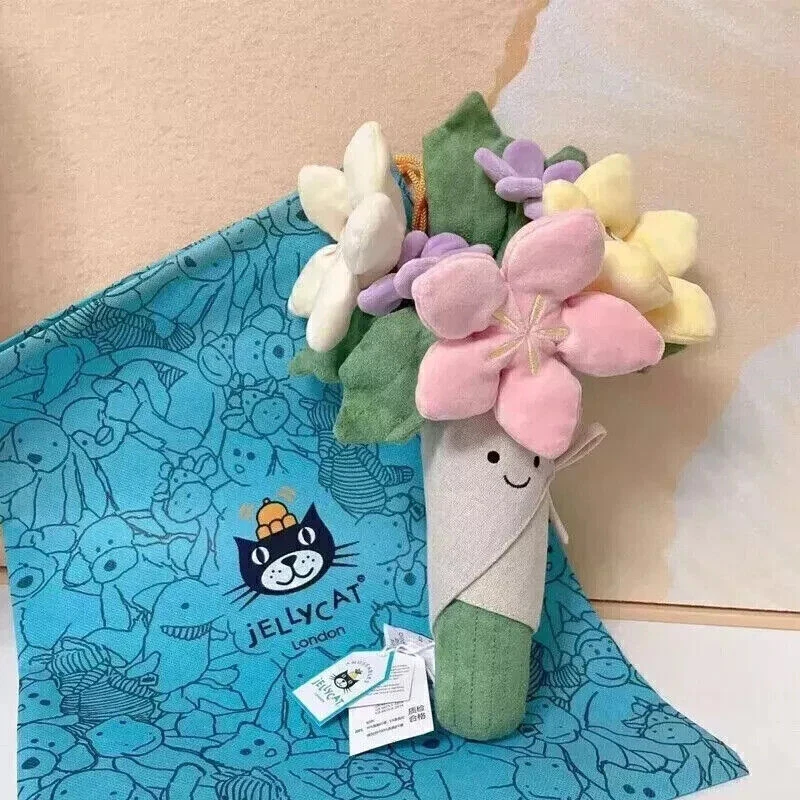This charming Jellycat doll is the perfect gift for any young girl celebrating a birthday or Christmas. Measuring about 12 inches in height, this adorable toy is expertly crafted in China and features a bouquet of colorful flowers. With its high-quality construction and attention to detail, this doll is sure to bring joy and smiles to any child who receives it. Whether you're a collector of Jellycat stuffed animals or simply looking for a special gift for a child, this doll is sure to delight. Its small size and lightweight design make it easy to carry and play with, while its vibrant colors and intricate details add a touch of magic to any imaginative story. Give the gift of joy and wonder with this beautiful Jellycat doll.