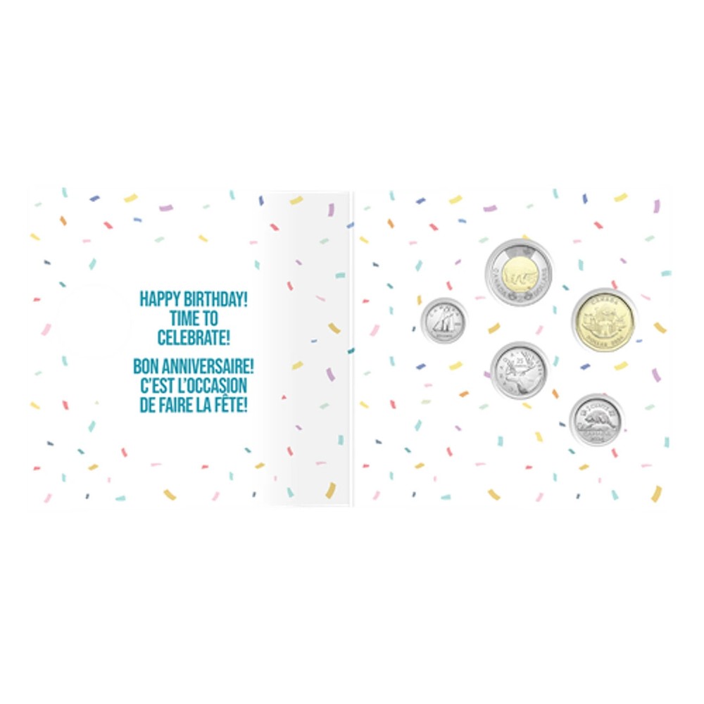 The Coin Company is proud to present Birthday Gift Card Set (2024) by the Royal Canadian Mint. Surprise someone on their birthday and make the day all the more memorable with the 2024 Birthday Gift Card Set! A fun and unique gift-with-card combo, this five-coin set includes a 2024-dated $1 coin that is a soon-to-be-treasured birthday keepsake. It comes in a colourful card with four other uncirculated Canadian coins—we even included an envelope, so you can present or mail this special gift that tells the recipient to “make a wish and blow out the candles, because this day is all about you.” Celebrate big with an extra-special birthday greeting. The 2024 Gift Card Sets are the first sets to feature 2024-dated uncirculated Canadian coins with the effigy of His Majesty King Charles III. The $1 coin in each 2024 Gift Set (Baby, Birthday, Holiday and O Canada) features a cute and fun beaver design that reflects the set’s theme. An official emblem of Canada, the hard-working beaver is a cultural icon and an important part of this country’s identity. Birthday Gift Card Set (2024) has a limited mintage of 100,000 coins.
