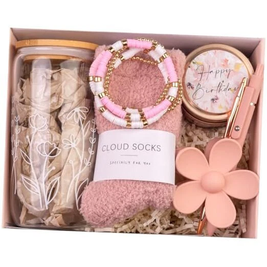 Return Policy Fast Delivery Trusted seller Birthday Gifts for Teen Girls, Gifts for Teen Girls, Teen Girl Gifts, Girl Birthday Gift Ideas for Her, Friend, Daughter, Niece, Granddaughter, Women, Sister, Teenage Girls, Happy Birthday Gift Box Product Description ? IMPRESS HER AT FIRST SIGHT: Our happy birthday gift boxes are beautifully designed and each gift is carefully arranged like a precious treasure waiting to be discovered. No wrapping needed. The stylish and thoughtful presentation makes it a cherished gifts for girls, girlfriends, sisters, daughters, nieces, sisters, friends, daughters birthday gifts. ?AN UNFORGETTABLE UNBOXING:This birthday gift baskets for women contains 8 gifts beautifully packaged, one 16 oz floral coffee glass cup, One "Happy Birthday"Soy Wax Candle, two ballpoint pens, a set of clay beaded bracelets, one Soft Fuzzy Socks and a flower hairpin, one Greeting Card and Exquisite Happy Birthday Gift Box. ?STRESS RELIEF GIFTS FOR HER : The Gift set all together will let her get a moment of relaxation in her life and enjoy the pleasure of this moment. At relaxing afternoons, drink a cup of coffee, light candles and watch a movie. Allow the heady aromas to whisk you away into relaxation. What better way to stay warm&cozy than with soft fuzzy socks? ?CARE PACKAGE FOR WOMEN: Happy Birthday Gifts Basket for Girls Gifts Set Best Friend Birthday Gifts for Women Friendship Gifts is specially designed and curated with love & thought to delight and spoil the special lady in your life, aims to bring her priceless joy and give her warm hug & love! Perfect as Mothers Day Gifts for Girls, Christmas Gifts for Girls, Relaxation Gifts for Women, Stress Relief Gifts, Valentines Day Gifts for Her Girlfriend Friend ?HAPPY BIRTHAY GIFTS BASKET READY: The entire things come in the high-quality beautifully gifts basket box packaged in a better way with protective padding inside to withstand any possible damage or bending in transit. Also, a Happy Birthday greeting card is included to write your blessing message freely Shipping Returns Payment Shipping Shipping is FREE to all addresses other than APO/PO boxes in the lower 48 states. All our stock ships from US-based warehouses. Shipped via USPS or UPS (depending on location and package weight) Unless stated otherwise, all orders will ship within 24-72 hours of your payment being processed. Check our feedback to see the great reviews of FAST shipping we offer. Returns Seller does not accept returns Payment We currently accept payment via eBay managed payments only. Once payment is cleared, we will dispatch your shipment within 1-3 business days. Please refer to the "Shipping" tab for more information regarding shipping speed to your destination.