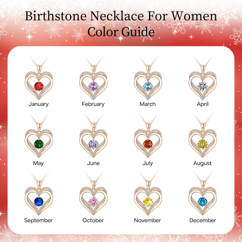 Original Design: The double heart design symbolizes love for each other, no words are needed between the two hearts;Heart birthstone necklace strengthens your love and is the choice to express your love for her on every meaningful day 18K Rose Gold Plated Jewelry Necklace: The pendant and the chain are made of 925 sterling silver with rose gold plating; These safe materials are hypoallergenic and antioxidant and won't rust, fade, corrode, tarnish or turn your skin green; Pendant size: 0.98"x0.86"; Zirconia Size: 0.2"x0.2" Necklace length: 15.7"+3" 5A Grade Cubic Zirconia: This jewelry gift for women is made of Exquisite material, prong inlaid with small round high luster CZ birthstones, shiny and dainty Gifts For Your Love: This diamond jewelry necklace is a unique gift for Mom, Grandma, Sisters, Daughters, Wife, Girlfriend, Friends, and other people you love on Birthdays, Anniversary, Graduation, Wedding, Mother's Day, Valentine's Day, Thanksgiving, Christmas, etc Gifts Packaing: The necklace comes in an elegant jewelry box and gift bag, ready to give. Please get in touch with us if you need more assistance