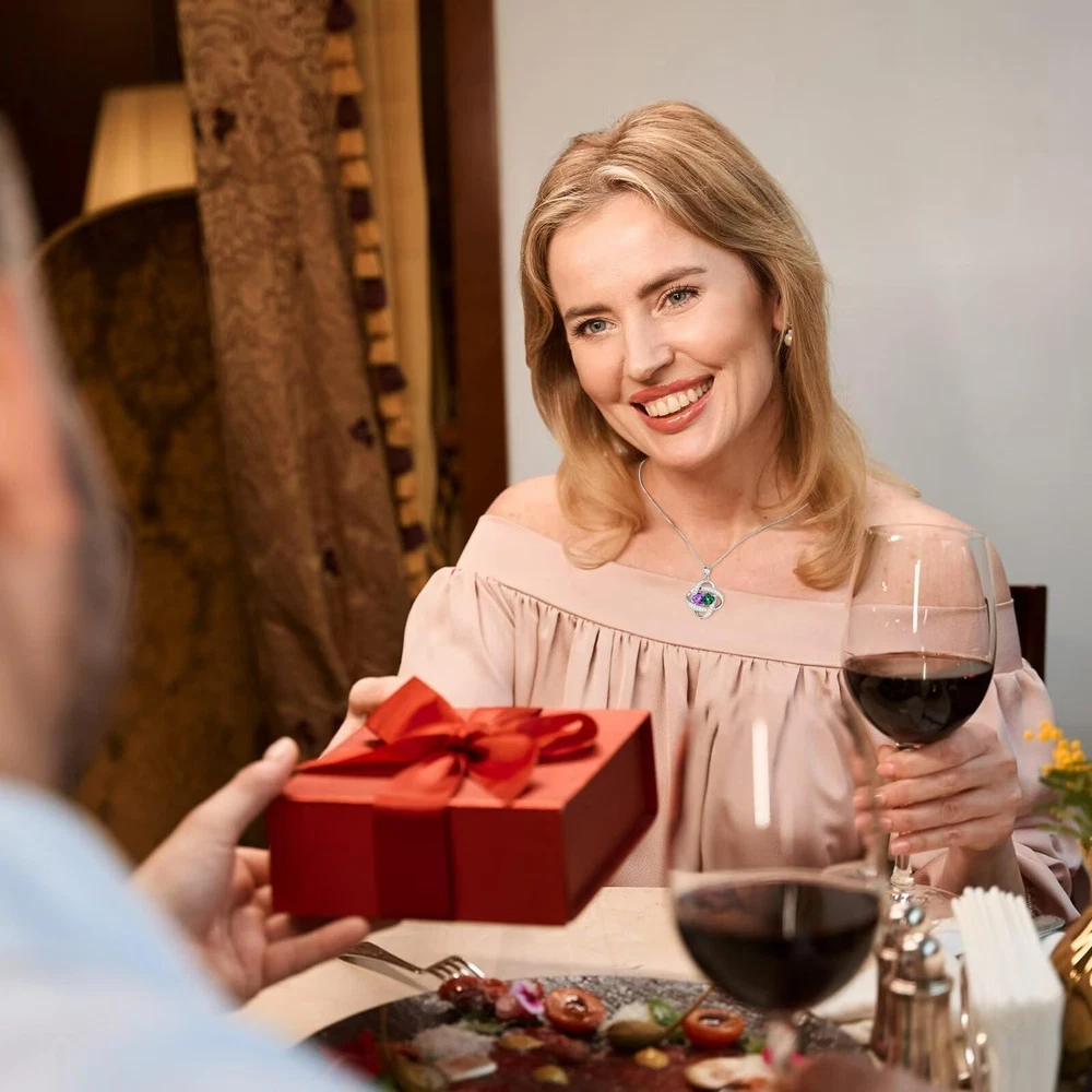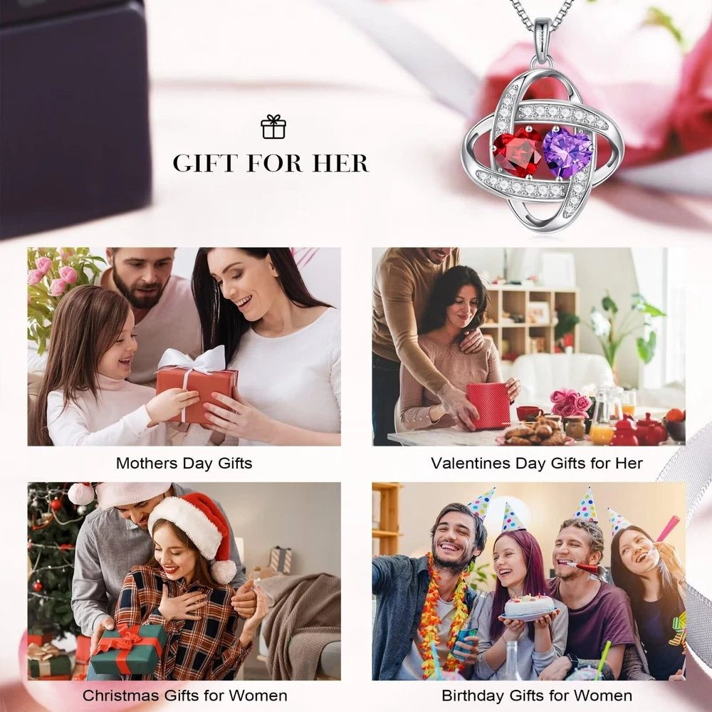 Love Knot Birthstone Gifts: Mothers Day Gifts for Women Birthday Gifts for Women Anniversary Gifts for Women Christmas Gifts for Women Valentines Day Gifts for Women Jewelry Attention Please avoid contacting with the acid and alkali, corrosive substances. Please avoid the collision, so as to avoid surface scratches. Please avoid wearing it when sweating a lot, shower or sleep, etc. Please wipe them with soft cloth when you clean your jewelries. Best Gifts: The best gifts for your wife, girlfriend, daughter or grandma, when she receive the gifts, we believe it is a surprise! GIFTS FOR WOMEN: Our double birthstone pendants are available in 78 styles. You can give your wife, girlfriend, mom, aunt, sister or grandma a big surprise on Mother's Day, Birthday, Christmas, Valentine's Day or other special occasions. Our elaborate double birthstone pendant, one representing your birth month and one representing hers. When she wear this love knot necklace, she will genuinely happy for this. MATERIALS: The chain and pendant are both made of 925 Sterling Silver. High quality platinum plating stuff that will not turn your skin to green, red or itchy. SIZE: 19 inches + 2 inches (Adjustable) Chain. This length works on practically anyone. Our love knot necklace highlight understated elegance and refined femininity. The double heart pendant is bigger than normal, it's an excellent gift choice for women daily wearing home or office. MEANING: Love knot necklace with double heart birthstone symbolizes your forever love for the special women in your life. Of course, you can also customize a necklace for your parents or grandparents, choose their respective month of the birthstones, as a record of their love between them, your family will love this special gift. Comes with a beautiful PU jewelry box. AFTER SALES SERVICE: Any question about our birthstone necklace, please contact us and we will answer your question within 24 hours and give you a satisfactory answer.