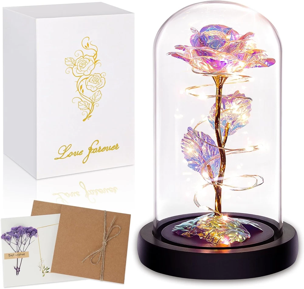 Store New Arrivals Add to Favorite View Feedback Contact Fast deliveries to the customer's home Quality customer service John Make the customers happy! Birthday Gifts for Women,Valentines Day Gifts for Her,Womens Valentines Glass Rose Gifts for Mom,Light up Rose Flowers in Glass Dome,Colorful Rainbow Flower Rose Gifts for Wife,Mom,Girls,Anniversary Description Glass, Plastic Artificial Art Rose Thoughtful Birthday Gifts For Women Valentines Day:Unique Valentines day gifts gifts for her.Mom Valentines day gifts,womens gifts for Valentines day.Colorful artificial flower rose gifts will never wither and die.The Rainbow Rose Flower Gifts is perfect and impeccable,represent love,colorful roses stand for love and warm.Rose flower is as full of infinite hope and beauty.And it will bring her infinite love and beauty.Perfect Valentines day gifts for woman who has everything,cute women gifts. Valentines Day Gifts For Her In Glass Dome:Valentines Day Gifts For Her,Mom Gifts, gifts for grandma,valentines rose in Glass Dome perfectly and eternally,crystal clear Glass Dome.Rose gifts for her.Women Gifts For Moms which are Awesome and Totally Thoughtful.Glass dome rose also would look amazing her gifts in your living room or bedroom.Unique rose flower gift for women,girlfriend,wife,mom,grandma,mother-in-law and stepmom,etc.Birthday presents for women.Mom valentines day gifts. Light Up Rose Mom Gifts For Womens:Valentines day gifts for mom from daughter. Valentines day gifts for sister,Valentines day gifts for her.Crystal artificial Rose in a glass dome is wrapped around an LED Strip light,Powered by 3 x AAA batteries(battery not include).Led strip light bright warm white lighting.The beautiful rose flower gift can use in daytime and nighttime for home room or create romantic atmosphere,Valentines glass rose is symbol of appreciation,best wishes,love and romantics. Perfect Valentines Day Gifts For Women Mom:Valentines presents for mom.This artificial rose flower gift is a perfect mom gifts for a loved people.This rainbow rose in glass dome is a sweet and gorgeous gift that will remind her of your love every day.The light up flower valentines Day gift appeal to all types of women at any age.Perfect as Valentines day gifts,mom birthday gifts,Valentines day gifts for women.Cute valentines day gifts for her. Valentines Flowers Gifts Makes A Smile Happen:Women Gifts from daughter son. Valentines day gifts for her.The twinkle lights wrapped around the rose in glass dome.Everyone is fascinated with it when it's lit up.Amazing color and warm bright.This is a great sentimental gift for mom valentines day which make a smile happen on her face !!! Gorgeous Valentines Rose in the dark and changes depending on the light and angle.Valentine flowers for valentine's day. Pamper Mom with Everlasting Rose This Valentines day:Valentines rose flower Gifts are wonderful presents for women Gift For Moms,birthday gifts for women,Valentines day,Party,Wedding,Mother Day,Thanksgiving,Graduations,Teachers Day,Anniversaries,Retirement, Funerals;Creative gifts for female,women, lovers,mother,children,friends,company staff and so on.Cute valentines day gifts for her. Rose In Glass Dome Size: 3.34"L x 3.34"W x 6.1"H,Gift Box Size:3.74"L x 4.5"W x 7.01"H;Package Include:1 X Rose Flower In A Glass Dome,1 X Gift Box;Tips:The color of rainbow rose flower in a glass dome will change follow different angles and light. Gold,pink,Colorful and other different colors Product Description Other Holiday Flower Rose for Choose Add to Cart Add to Cart Add to Cart Add to Cart Add to Cart Add to Cart Add to Cart Customer Reviews 4.6 out of 5 stars 2,244 4.4 out of 5 stars 21,998 4.5 out of 5 stars 317 4.9 out of 5 stars 46 4.5 out of 5 stars 500 4.4 out of 5 stars 215 4.6 out of 5 stars 893 Price $12.99 $ 12 . 99 $8.98 $ 8 . 98 $32.00 $ 32 . 00 $54.99 $ 54 . 99 $17.99 $ 17 . 99 $19.99 $ 19 . 99 $25.99 $ 25 . 99 Flower Type Colorful Rose Flower Colorful Rose Flower Preserved Flower Rose Preserved Flower Rose Preserved Flower Rose Preserved Flower Rose Preserved Flower Rose Other Colors Available ✔ ✔ ✔ ✘ ✔ ✔ ✔ Type With Warm Light With Purple Gift Box With 100 Languages Necklace 24 PCS Real Roses With Colorful Light With Colorful Light With 100 Languages Necklace Giftable ✔ ✔ ✔ ✔ ✔ ✔ ✔ Suitable for Various Important Occasions Various Important Occasions Various Important Occasions Various Important Occasions Various Important Occasions Various Important Occasions Various Important Occasions Base Diameter 3.34 Inches Number of Items 1 Country of Origin China Container Material Glass Indoor/Outdoor Usage Indoor Unit Count 1.0 Count Room Type Living room Batteries required Yes Material Glass,Plastic Artificial Art Rose Package Type Traditional Package Information Jar Container Shape Dome Included Components Artificial Rose, Glass Dome, LED Strip Light Item Package Quantity 1 Plant or Animal Product Type rose Fabric Type Glass, Plastic Artificial Art Rose Item Weight 8.8 ounces Seasons All Occasion Mother's Day, Christmas, New Year, Birthday, Valentine's Day Special Feature Birthday gifts for women,Mom Gifts For Women,Gifts For Her Color Rainbow Specific Uses For Product Birthday gifts for women,Mom Gifts For Women,Gifts For Her Shape Glass Dome Recommended Uses For Product Birthday Gifts For Women,Christmas gifts for women,Valentines Gifts For Her,Mothers Gifts For Mom,anniversary gifts,Wedding Gifts,Thank You Gifts,Gift For Any Occasion Product Dimensions 3.34"D x 3.34"W x 6.1"H Number of pieces 1 ABOUT US We offer the best prices around on high quality products. Our E-store includes media such as books, movies, music and games while offering electronics, toys, sporting apparel, clothing, tools, general home, garden items and more. SHIPPING We are always working hard to ensure your package arrives as soon as possible. Please understand that some factors like weather, high postal traffic, and the performance of shipping compani