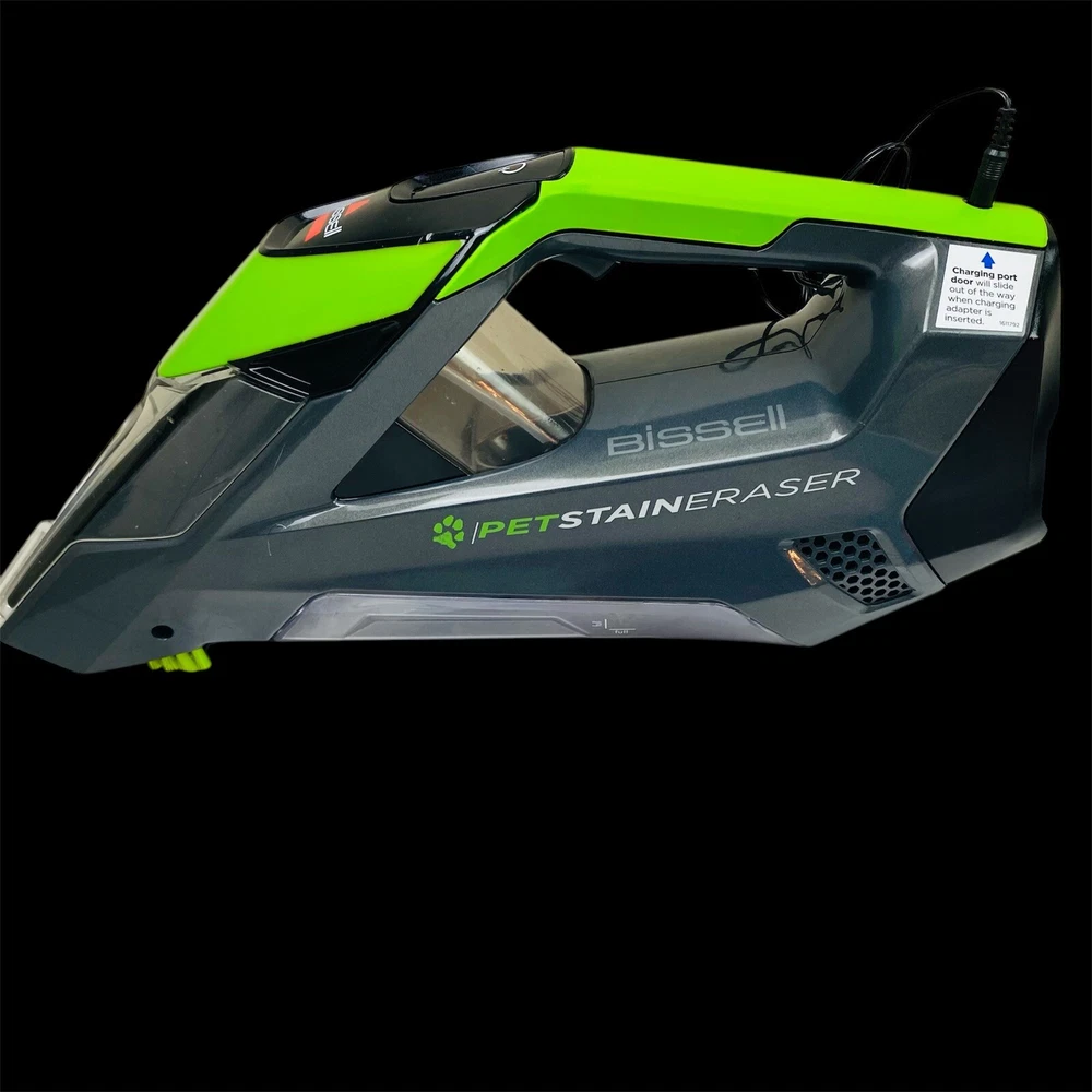 The Bissell 2003A Pet Stain Eraser is a handheld carpet cleaner with a 0.5 L capacity. It is black and green in color and comes with a charger. This portable cleaner is designed for pet stains and features odor eliminating technology, spot cleaning capability, and quick drying. It is cordless for convenience and easy use. Item looks and works like new, used very lightly . We ship same business day for super fast delivery.