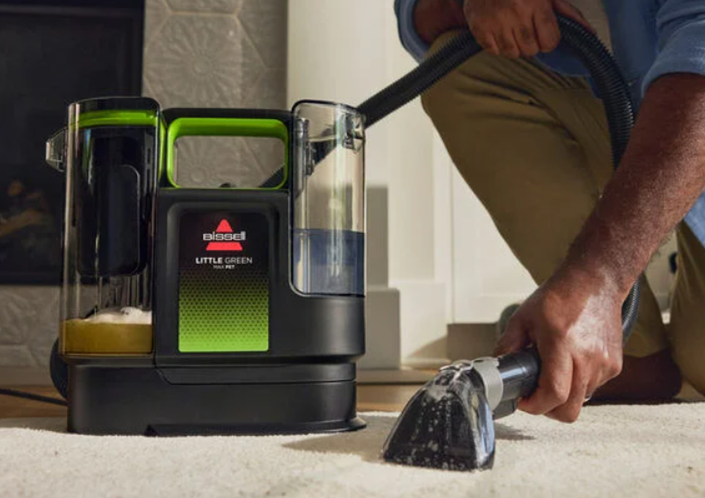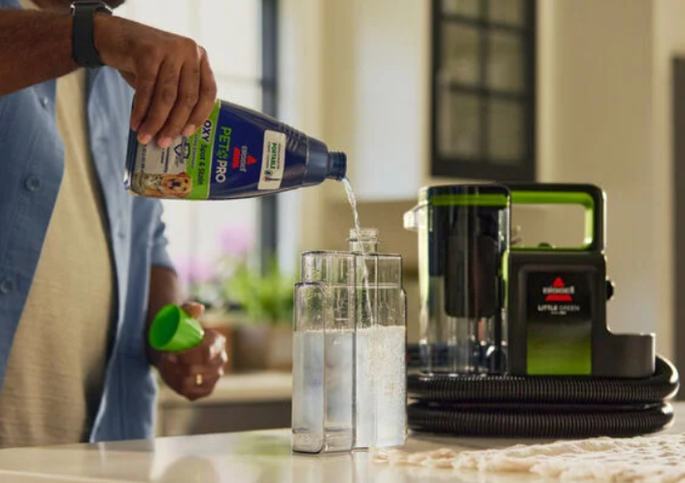Discover superior pet mess cleanup with the Little Green Max Pet Portable Carpet Cleaner, boasting 30% more powerful suction¹ than the Shark StainStriker. EVERY PURCHASE SAVES PETS. BISSELL proudly supports BISSELL Pet Foundation and its mission to help save homeless pets. SUPERIOR SUCTION. 30% more powerful than the competitive portable deep cleaner.* INSTANT & PERMANENT PET STAIN REMOVAL. Use with Triple Action PET PRO OXY Spot & Stain formula with Urine Eliminator and StainProtect Technology to protect against future stains. SELF-CLEANING TOUGH STAIN TOOL. Rinse out left-behind residue, dirt and debris with a one-touch hose and tool cleanout. EASY TO USE. Longer hose and cord let you easily clean hard-to-reach messes, and the two tank technology simplifies filling and emptying while keeping clean and dirty water separate. SPRAY, SCRUB, AND SUCTION. TRIPLE ACTION cleaning removes tough set-in pet messes like muddy paw prints, embedded dirt, bio messes, and more. IN THE BOX: Self-cleaning Tough Stain Tool, Specialized Pet Hair Removal Tool, 8 oz. trial size BISSELL PET PRO OXY Spot & Stain with Urine Eliminator and StainProtect Technology. Introducing the BISSELL Little Green Max Pet Portable Carpet & Upholstery Deep Cleaner, a cutting-edge machine designed with convenience in mind—especially for pet parents. This innovative cleaner uses a combination of superior suction and scrubbing action to permanently remove tough pet stains on soft surfaces and eliminate odors like pet urine. With a lightweight design, the Little Green Max Pet is easy to use and store. This machine has a one-touch hose and tool cleaning function to provide a simple "clean-afterthe-clean" experience without having to change out your tool. BISSELL proudly supports BISSELL Pet Foundation and its mission to help save homeless pets. When you buy a BISSELL product, you help save pets, too. We’re proud to design products that help make pet messes, odors and pet homelessness disappear. *versus Shark StainStriker and Dirt Devil Portable Deep Cleaner based on ASTM F558 average peak air power through hose with connector covered
